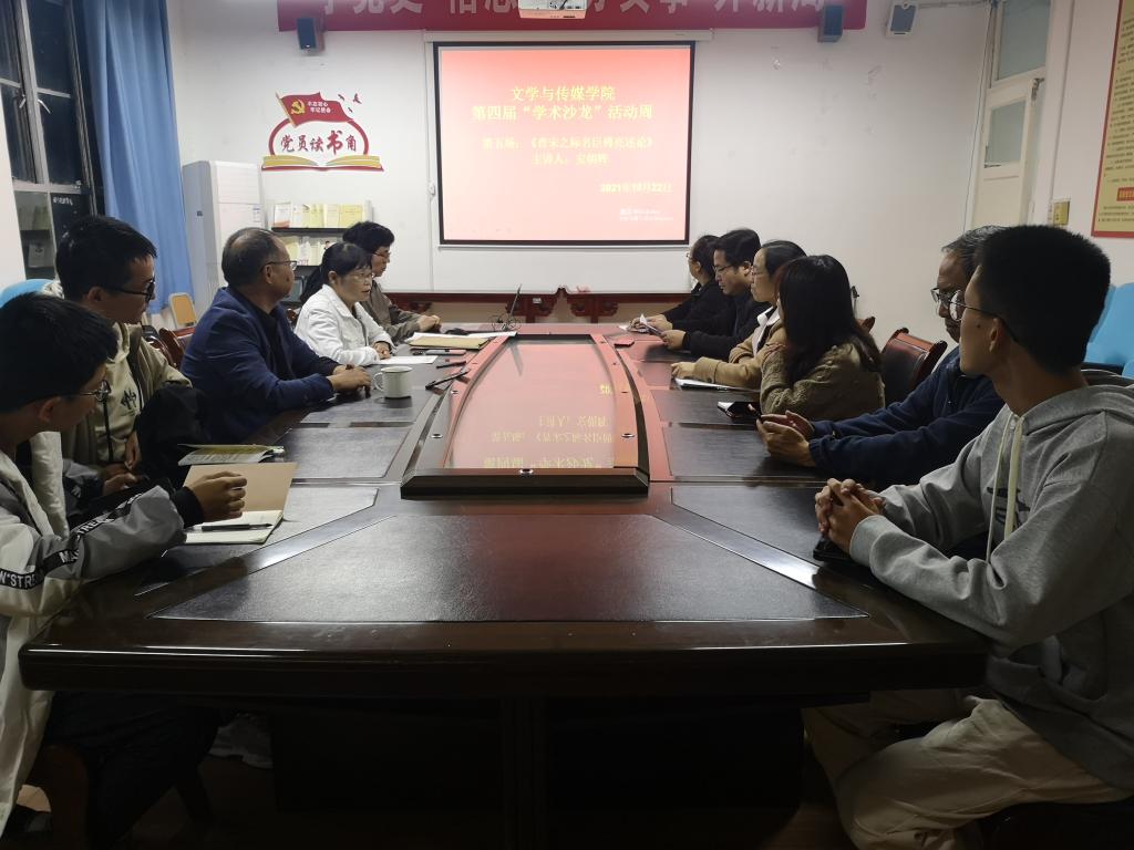 10月22日晚7:00,中国古代文学组在2307会议室,顺利举办了太阳集团tcy8722第四届“学术沙龙”活动周的第五场学术沙龙活动。本场学术沙龙活动由安朝辉老师主讲,主题是“晋宋之际名臣傅亮述论”,孙鸿教授主持,学报编辑部主任杨明贵和学科组郑继猛教授、罗焕玉副教授 、王丽芳副教授、关满春老师、谭志轩老师以及部分员工参加了活动研讨。