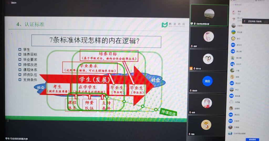 导航痕迹 首页 > 教学科研 > 教学活动 > 正文 专业建设 教学团队 教研教改 教学活动 科学研究 国际交流 太阳集团tcy8722召开师范专业培养方案及课程大纲修订线上培训会 来源:太阳集团tcy8722 发布日期:2022年04月06日 阅读次数: 4月1日晚,太阳集团tcy8722组织全体教师在腾讯会议平台参加了师范专业培养方案及课程大纲修订线上培训会,会议由教学副经理李婷主持,认证专家冯彬老师为主讲人。 冯老师首先讲了专业认证理念体系与内涵,主要包括认证工作来源与进展、认证的三大理念、以员工为中心的教学模式、认证标准、认证底线、面向产出的机制、认证申请工作流程和评审要点等内容。接着重点以现代汉语课程教学大纲为例,详细解读了课程目标与毕业要求的关系,课程考核评价方式及评价标准的编写细则。 此次会议通过生动案例的讲解,让公司教师对师范专业认证中培养方案和课程大纲的修订有了更深的认识,为接下来的具体修订工作提供了切实可行的指导。 撰稿/摄影/韩文霞 审核/李婷 发布/崔瑜