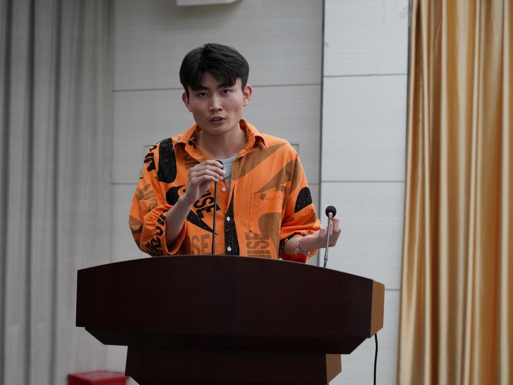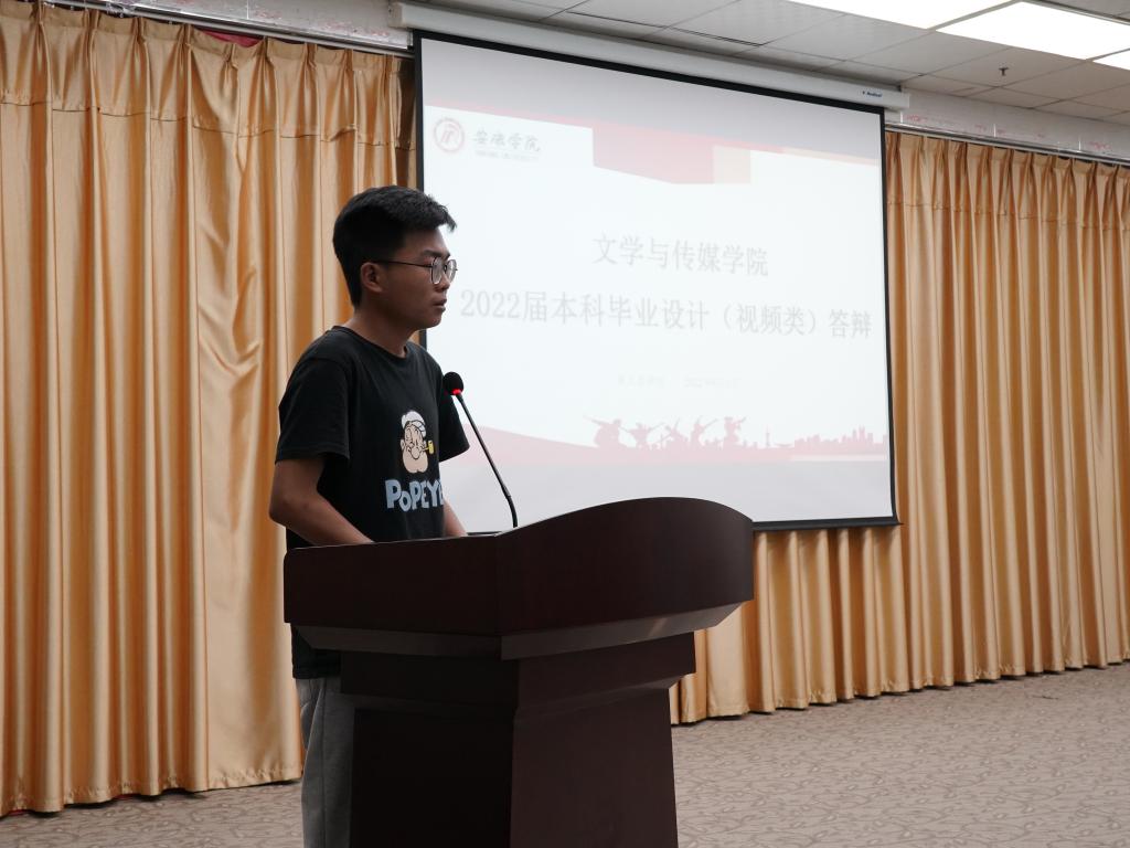 按照答辩要求,参与答辩的8位同学分成4组分别就毕业设计的选题意义、作品内容、创作思路、团队分工、创新与不足等情况进行介绍并现场展示视频作品。