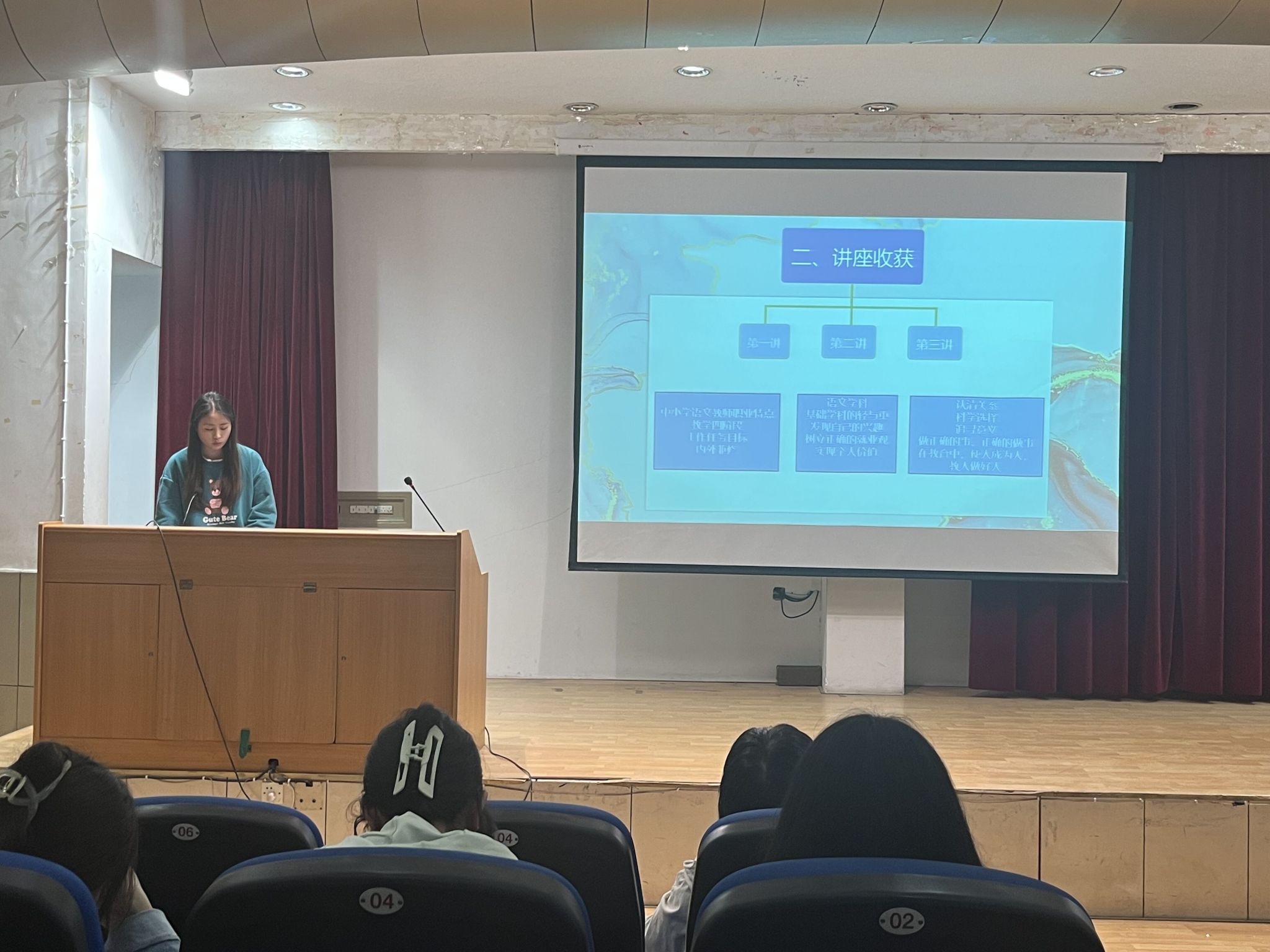 19个学习小组(每小组11人)经过了前期的精心准备,通过语言展示+ppt演示的方式就三位老师的讲座谈了各自的收获、思考,对汉语言文学专业就业形势、职业前景进行分析,并就未来如何成为优秀的语文教师,如何提升自身素养、能力谈了认识。韩文霞为每个学习小组打分并点评。她肯定了汇报会员工们的收获,并鼓励大家在接下来的微格教学训练中积极锻炼,为未来成为一名优秀的语文教师做好准备。