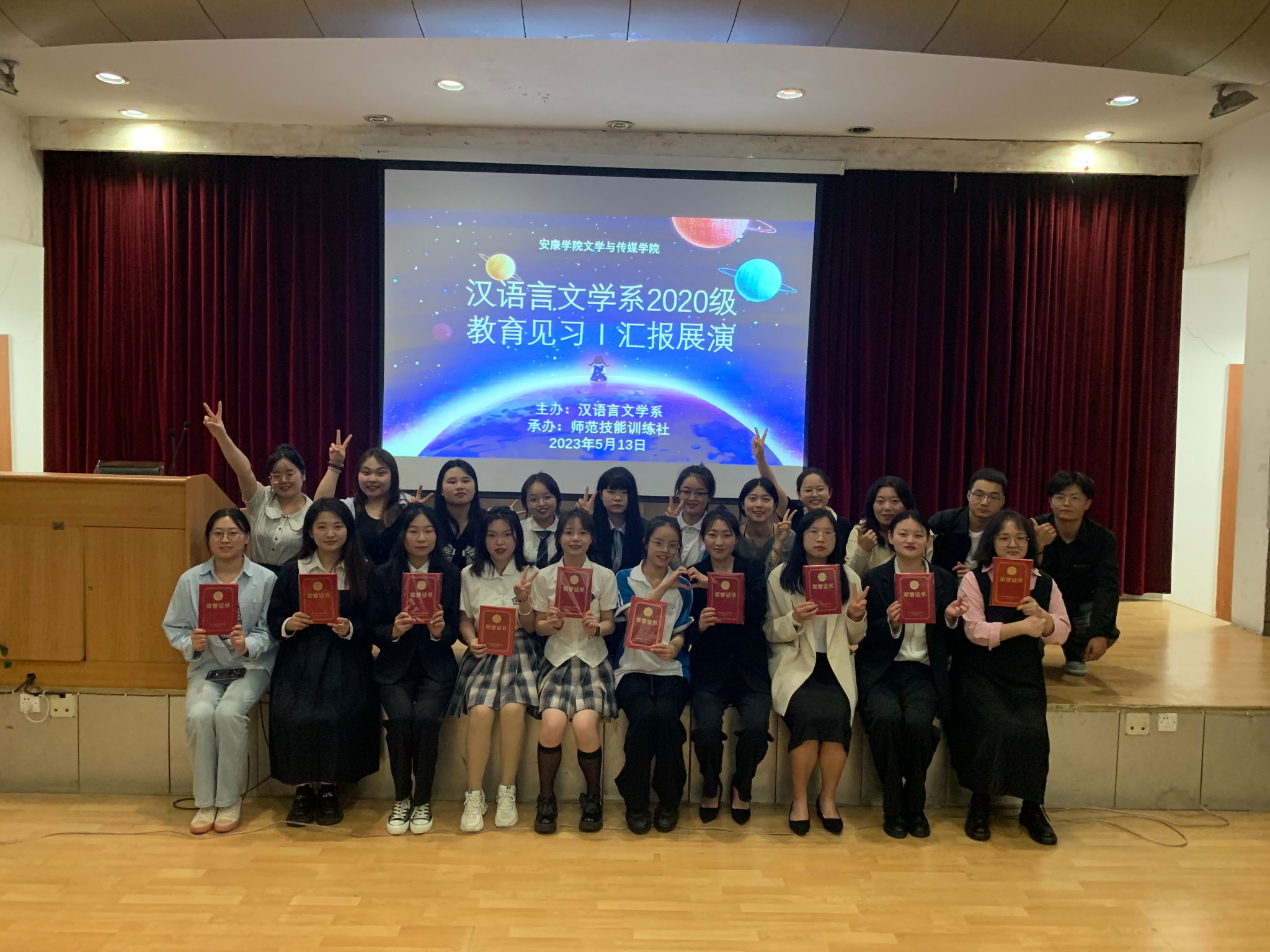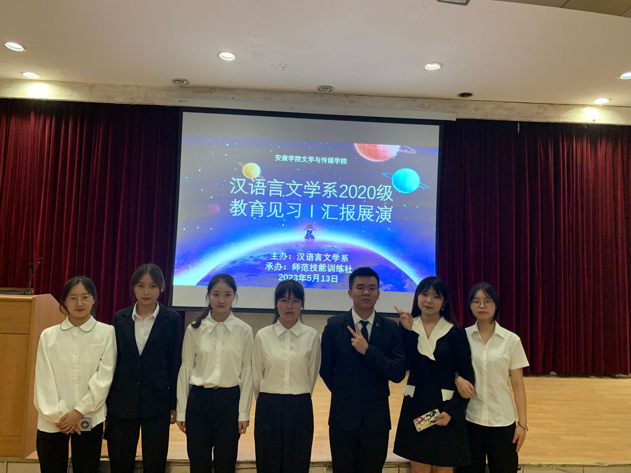 5月13日晚七点半,太阳集团tcy8722在江南校区一号楼六楼报告厅举行汉语言文学专业2020级教育见习1汇报展演。本次见习汇报展演由学科教学论任课教师张格瑄指导,师范技能训练社承办,汉语言文学专业2020级全体员工参加。