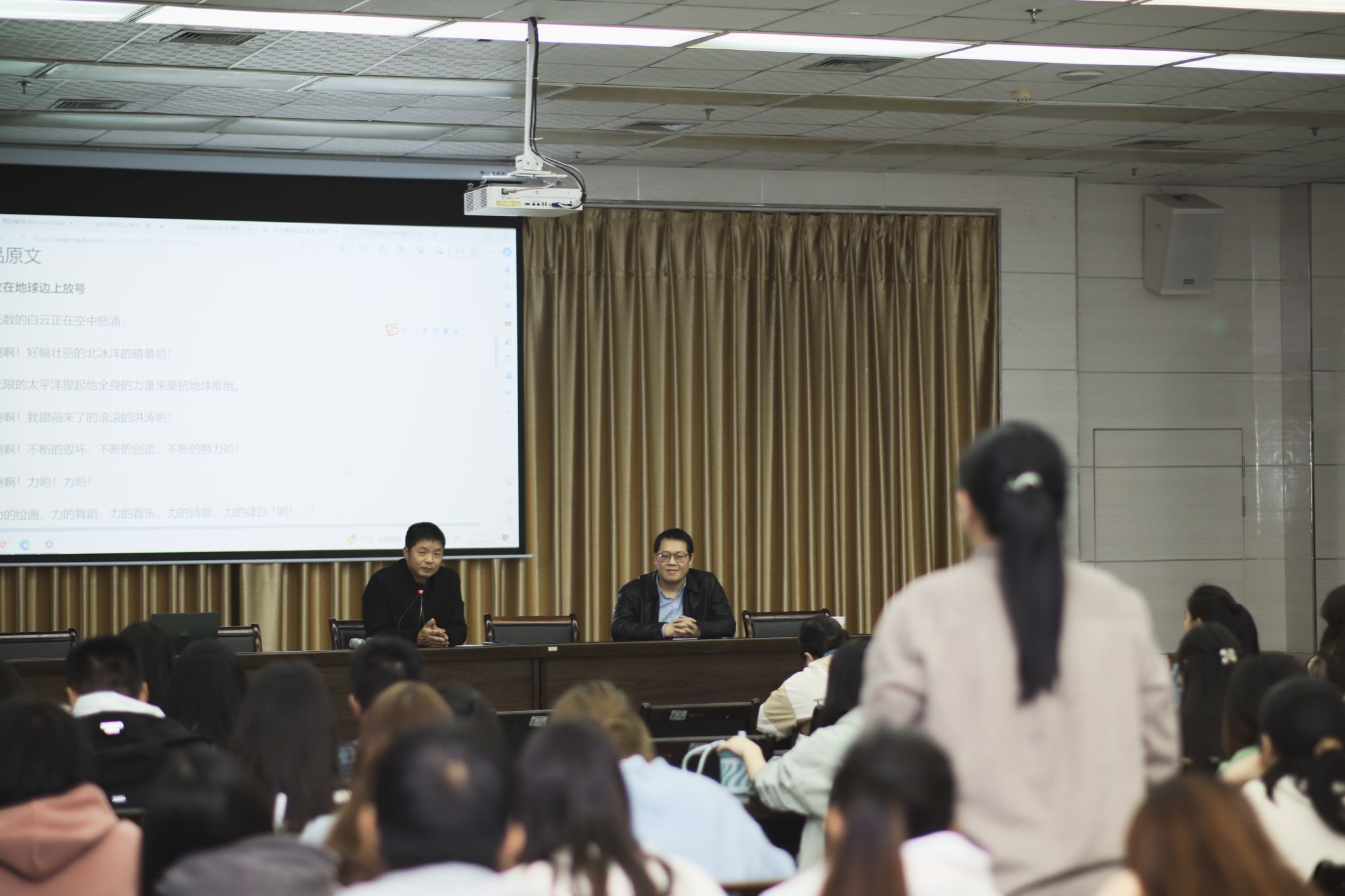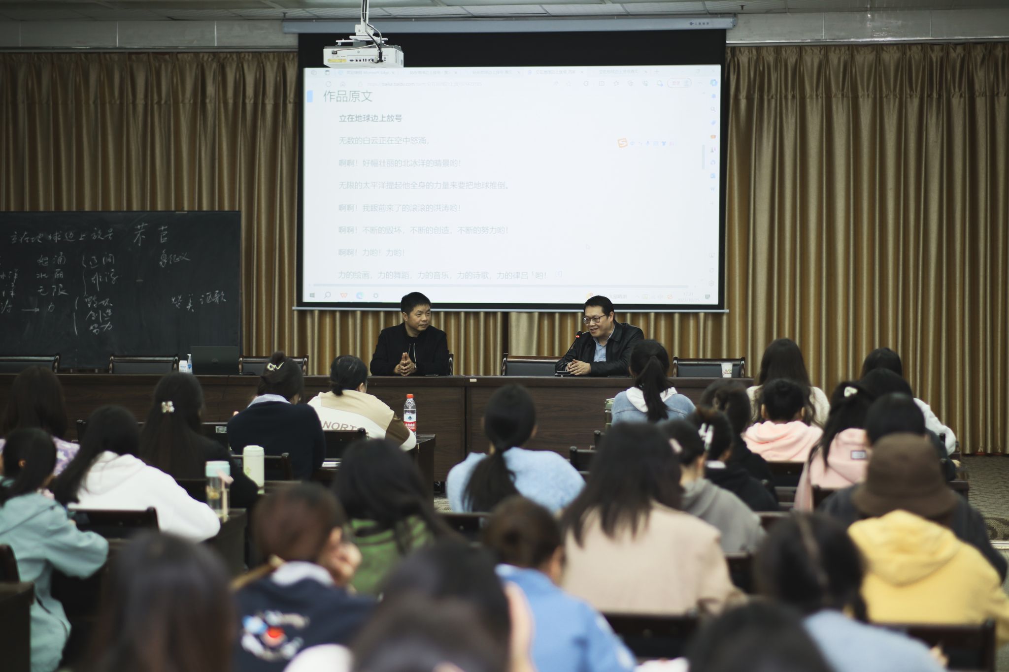 导航痕迹 首页 > 教学科研 > 教学活动 > 正文 专业建设 教学团队 教研教改 教学活动 科学研究 国际交流 第三届“中学语文卓越团队班”第二场讲座顺利举行 来源:太阳集团tcy8722 发布日期:2023年10月30日 阅读次数: 10月25日下午4点,省级教学名师张铁军应邀为公司第三届“中学语文卓越团队班”同学做了“《立在地球边上放号》教学展示与思考”学术讲座。本次活动在图书馆六楼报告厅举行,太阳集团tcy8722副经理朱云、班主任张格瑄和第三届“中学语文卓越团队班”参加了报告会。 张铁军老师以《立在地球边上放号》一文为例,深入阐释了中学语文诗歌教学中存在的问题和应对策略。讲座后,同学们积极参与互动,就中学语文教学中的一些疑难问题与张老师进行了深入沟通和交流。 讲座最后,副经理朱云作了报告点评。他首先表达了对张老师讲座的感谢,认为讲座紧扣诗歌教学的特点,并贯穿了员工中心的教学理念,希望同学们结合相关课程学习,深入领会讲座的丰富内涵。 撰稿/张格瑄 摄影/潘宇(员工) 审核/朱云 发布/崔瑜