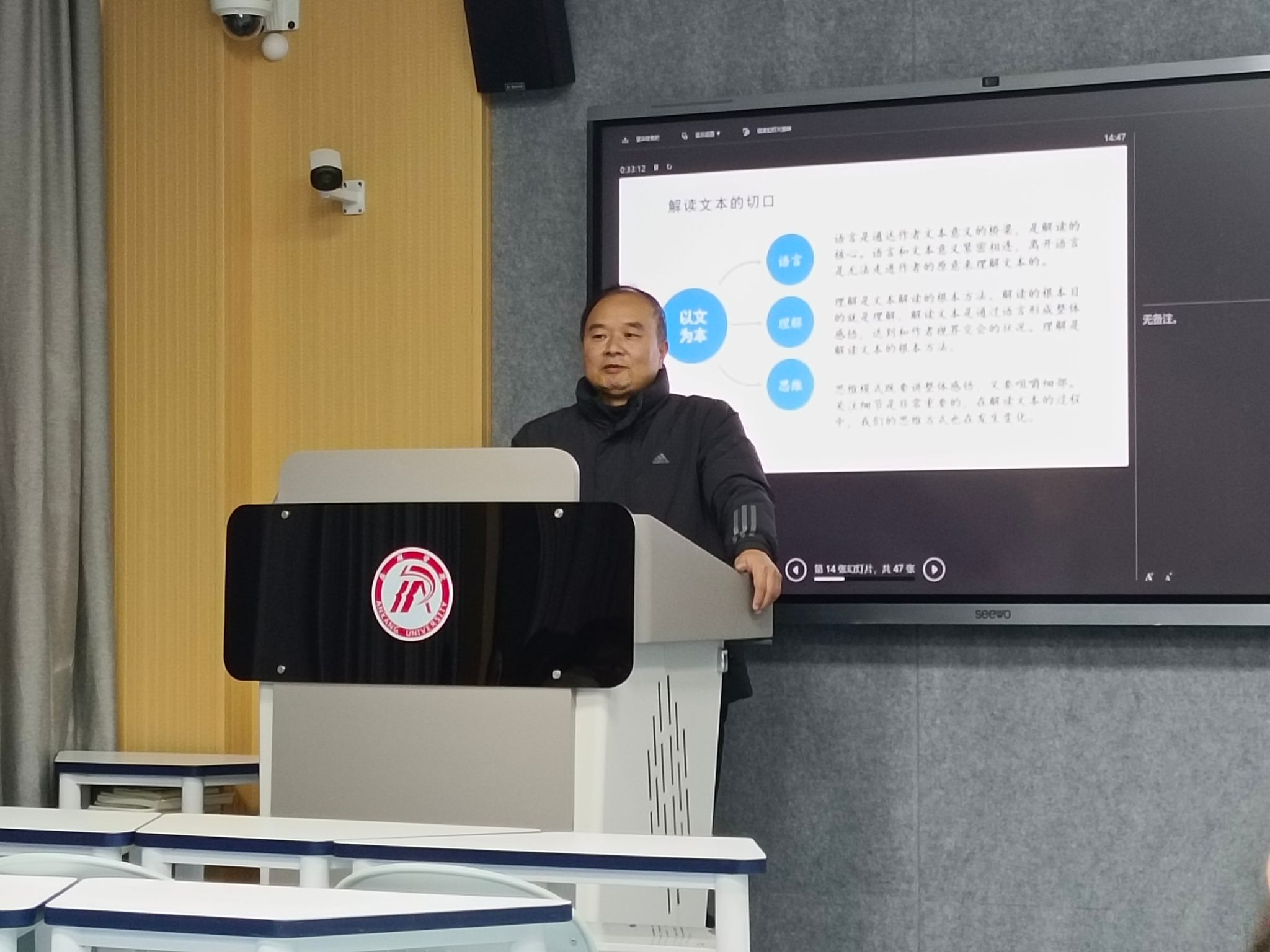 11月30日下午,在1号楼1405教室,太阳集团tcy8722邀请李玉恒老师为汉语言文学专业员工做了主题为“初中语文阅读教学文本解读面面观”的学术讲座。