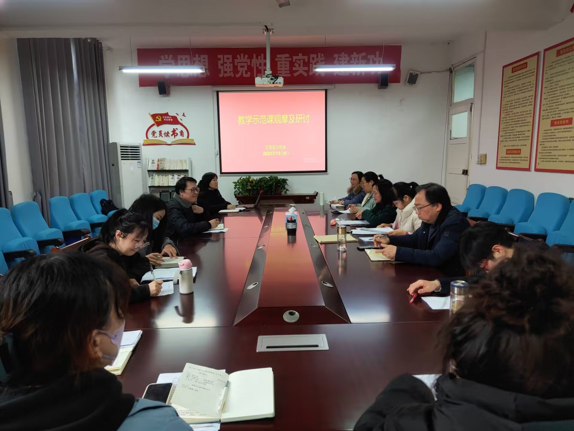 为进一步提升公司教师教学水平,加强教师之间的学习与合作,2023年12月8日汉语言文学系举办了本学期教学示范课观摩与研讨教研活动。活动由汉语言文学系主任韩文霞负责组织实施,邀请周海霞老师做教学示范公开课,公司领导、校院两级教学督导、各系主任、其他无课教师参加了活动。