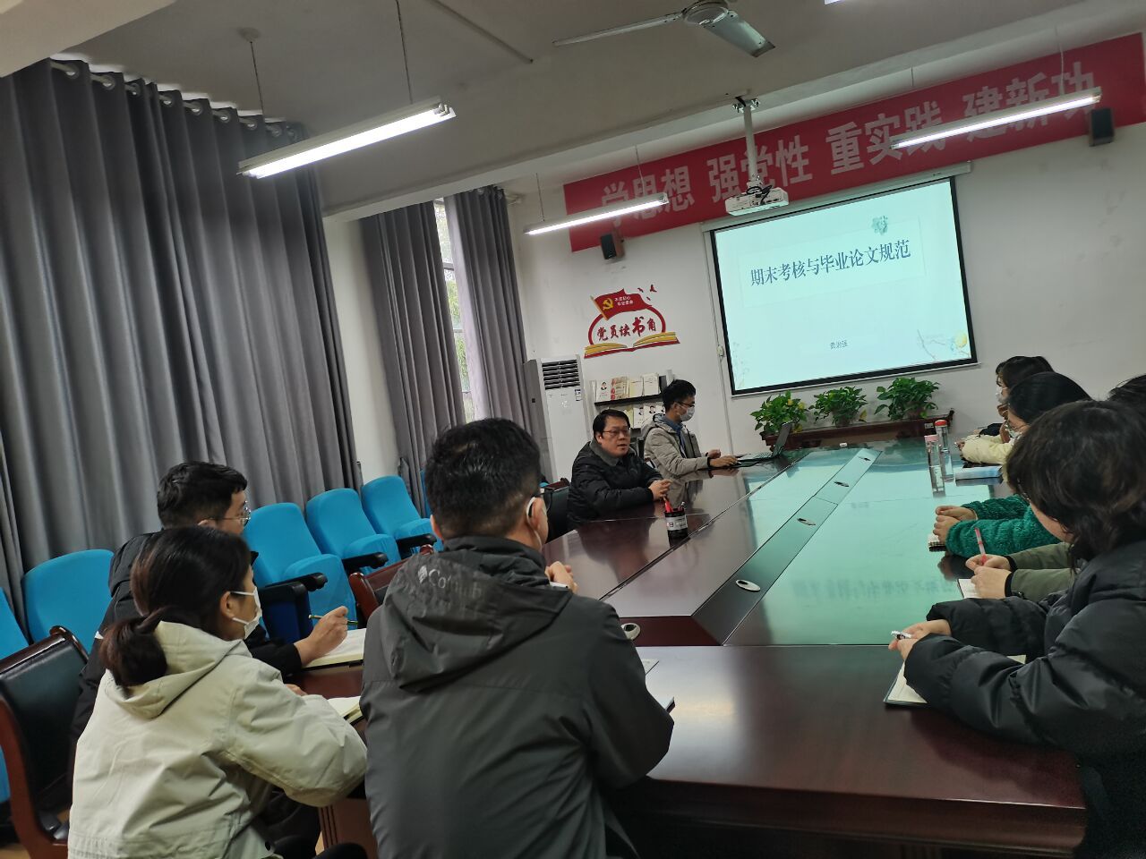为提高青年教师的期末出题水平和毕业论文指导质量,提升公司的教学资料归档质量,以更好地迎接公司产品审核评估,12月13日下午,太阳集团tcy8722在2307会议室组织青年教师开展了“期末考核及毕业论文规范”经验交流活动。活动由副经理朱云主持,公共教研室主任黄治强老师主讲,近三年新入职青年教师参会学习交流。
