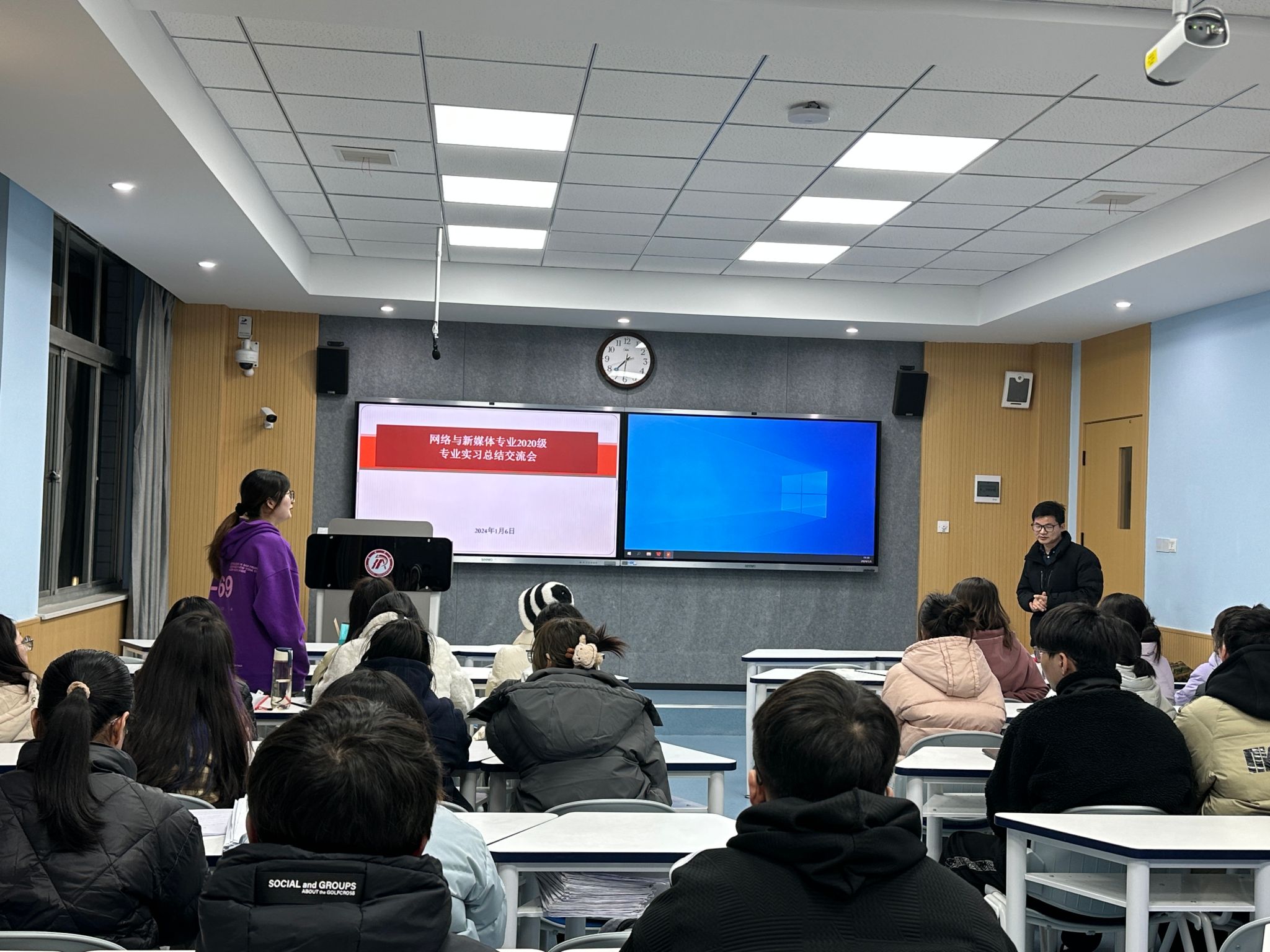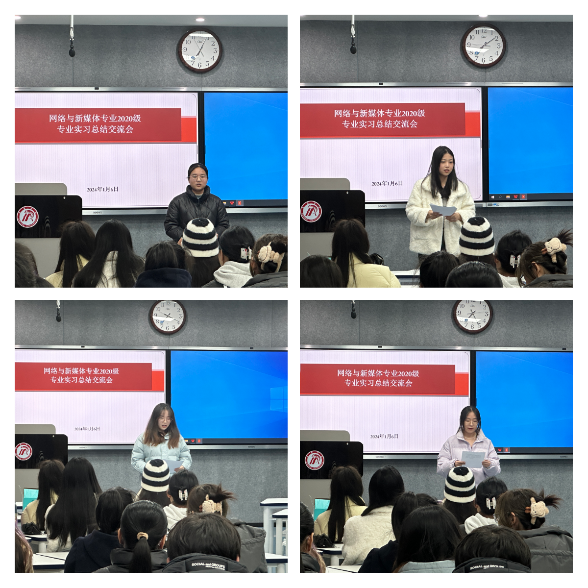 2024年1月6日晚,太阳集团tcy8722网络与新媒体2020级全体员工在1205教室召开专业实习经验分享交流会。会议由实习带队教师张建涛主持,本次会议分为三个环节,首先是优秀员工代表发言,其次为员工自由发言,最后由教师张建涛对此次实习工作进行了总结。