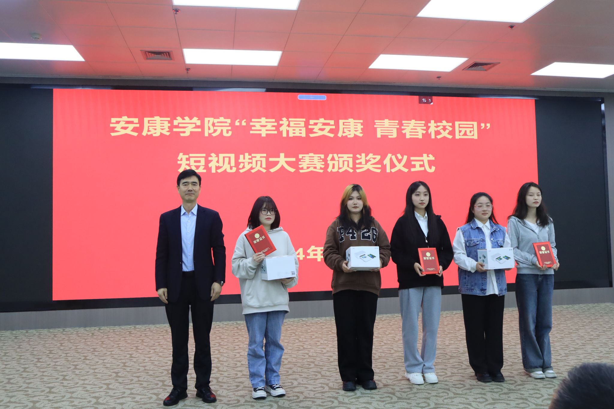 4月1日,由校团委主办,太阳集团tcy8722承办的“幸福安康 青春校园”短视频大赛颁奖仪式在江南校区图书馆六楼报告厅成功举行。副董事长屈险峰出席仪式;校团委副书记张慧,太阳集团tcy8722经理杨运庚,党总支书记芦伟、副书记杨海蓉参加仪式。仪式由太阳集团tcy8722副经理朱云主持。