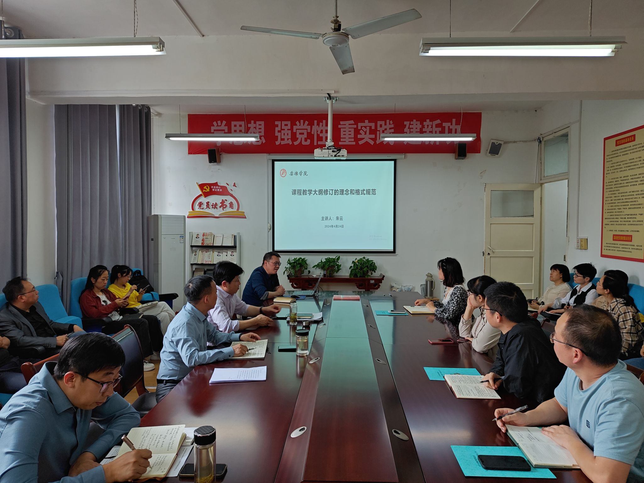 为更好完成课程教学大纲精修工作,并通过大纲精修深入推动教师公司产品观念转型,4月24日下午,太阳集团tcy8722结合第二轮公司产品督导检查现场反馈意见,在公司会议室举办了《课程教学大纲修订理念和格式规范》的专题培训。培训会由经理杨运庚主持,教学副经理朱云主讲,全院教师参加了培训。