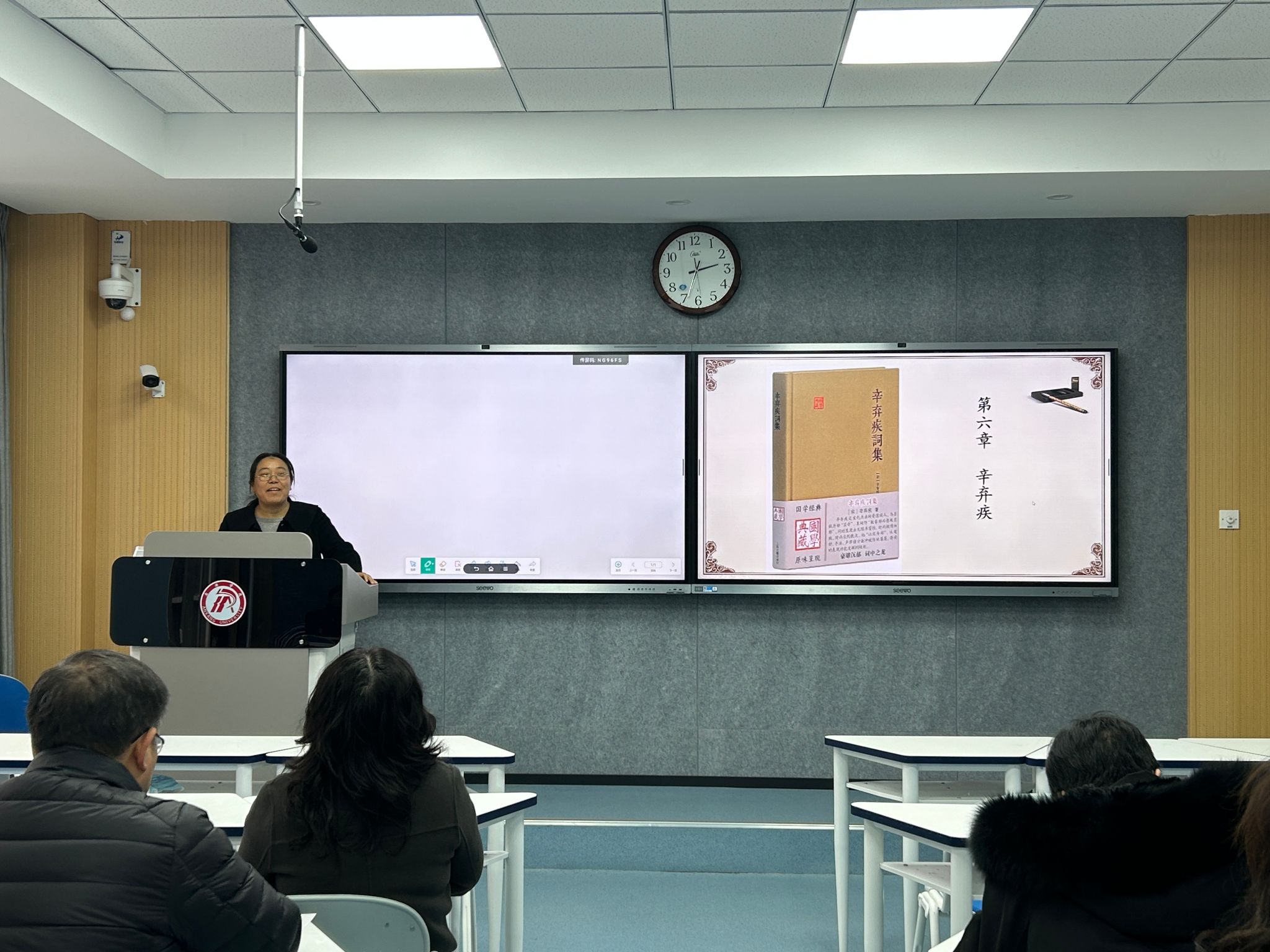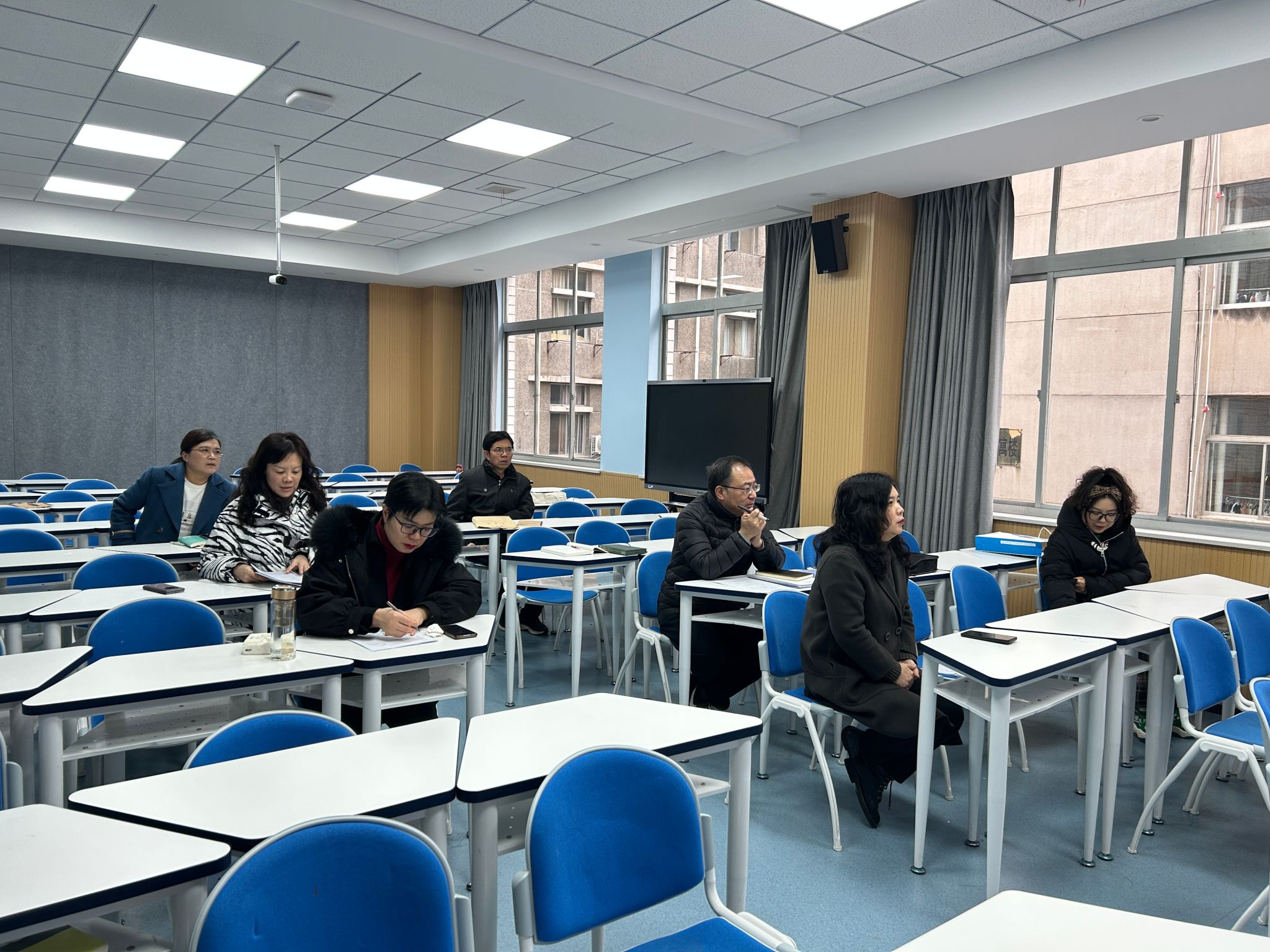 本轮磨课主要分两个阶段完成:第一阶段为磨课准备阶段,任课教师从11月26日至12月3日认真完善各类教学资料,做好磨课准备。第二阶段为磨课研讨阶段,任课教师根据PPT课件进行20分钟模拟课堂授课。每位任课教师授课结束后,三位教学督导都从教学目标设置、教学内容安排、互动环节组织、课程思政落实、现代教育技术运用等方面对教师的课堂教学进行点评和指导;其他教师也从不同视角积极参与磨课讨论,交流好的做法,相互学习提高。