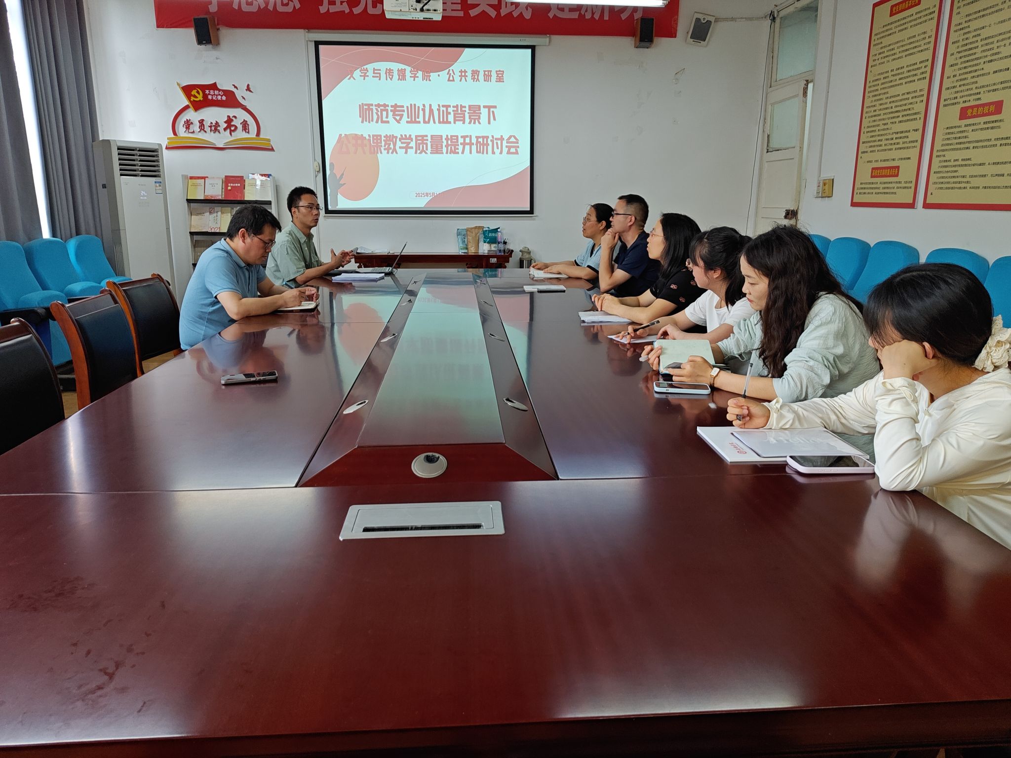 导航痕迹 首页 > 教学科研 > 教学活动 > 正文 专业建设 教学团队 教研教改 教学活动 科学研究 国际交流 太阳集团tcy8722公共教研室举办师范专业认证背景下公共课教学质量提升研讨会 来源:太阳集团tcy8722 发布日期:2025年05月16日 阅读次数: 为进一步提升公司开设的公共课程的教学质量,协助完成公司其他专业的师范专业认证工作,5月14日下午,太阳集团tcy8722组织召开了“师范专业认证背景下公共课教学质量提升研讨会”。教学副经理朱云,公共课程全体授课教师参加了会议,会议由公共教研室主任黄治强主持。 会上,朱云反馈了前期公司四个师范专业的预认证情况,重点从课堂授课、教学大纲、试卷归档等维度对教学质量规范进行了说明,要求全体公共课教师要紧密结合“员工中心、持续改进、产出导向”理念做好公共课程教学改革工作,同时强调师范专业认证是公司的大事,本轮师范专业认证涉及的四个师范专业均有公司开设的公共课程,各任课教师要加强工作纪律,认真配合完成相应工作任务。随后,黄治强还就公共教研室课程平台建设和公共课程分层教学提出建议,与会老师围绕这两个方面进行了交流探讨。 本次教学研讨会是公司第三轮师范专业认证背景下的一次主动自查自纠会议,对于进一步提升公司公共课程质量,顺利完成后续师范专业认证工作奠定了基础。 撰稿/摄影/黄治强 审核/朱云 发布/崔瑜