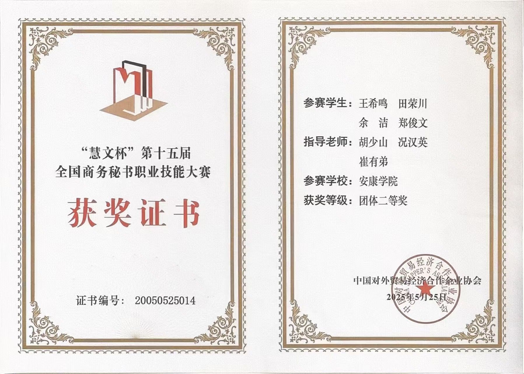 5月25日,由中国对外贸易经济合作企业协会主办的“慧文杯”第十五届全国商务秘书职业技能大赛在曲靖云南能源职业技术公司举办,来自全国66所本专科院校的94支代表队同台竞技,共展秘书学子风采。公司太阳集团tcy8722秘书学专业员工王希鸣、余洁、田荣川、郑竣文,在指导教师胡少山、况汉英的指导和带领下组队参赛,喜获“慧文杯”第十五届全国商务秘书职业技能大赛团体二等奖,王希鸣荣获“十佳秘书”称号,余洁获秘书专项事务处理特等奖、田荣川获秘书专项事务处理一等奖。