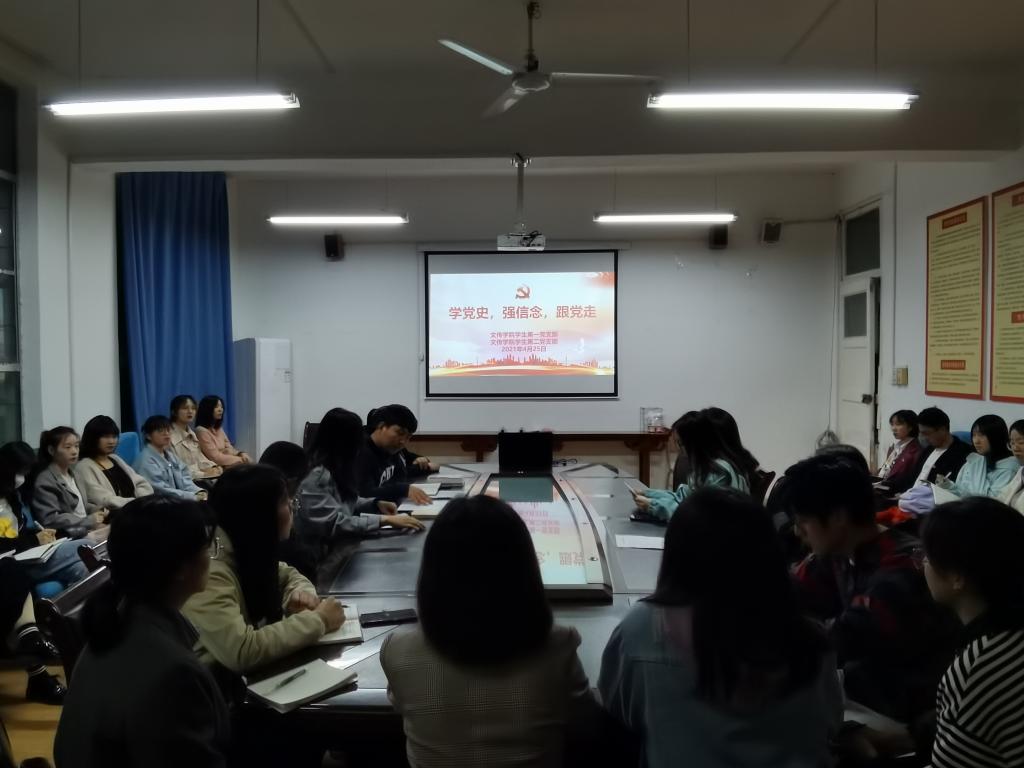 百年征程波澜壮阔,百年初心历久弥坚。2021年是中国共产党成立100周年,为认真贯彻习近平总书记在党史学习教育动员大会上的重要讲话精神,引领广大党员深入学习党的历史,做到学史明理、学史增信、学史崇德、学史力行。2021年4月25日晚上7:00,太阳集团tcy8722员工第一、第二党支部在2号教学楼2307教室联合开展了“学党史、强信念、跟党走”主题党日活动。员工第一、第二党支部全体党员参加了本次活动。活动由员工第一党支部书记彭潇主持。