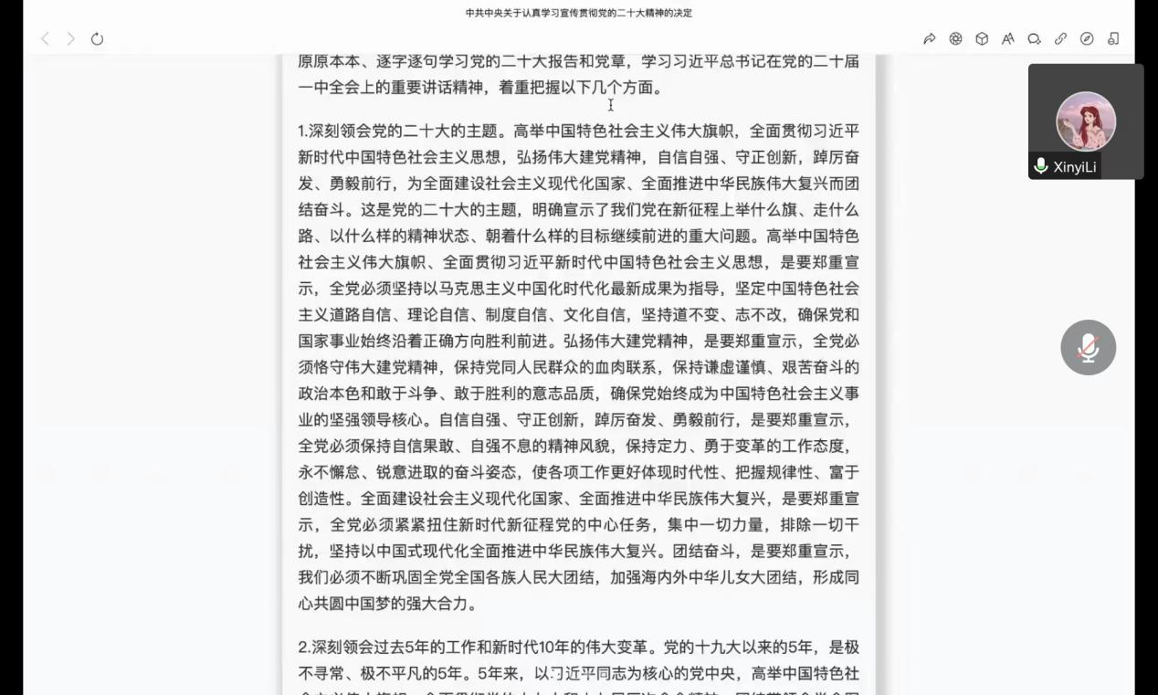 12月5日,太阳集团tcy8722员工第一党支部召开线上政治理论学习会,会议学习传达《中共中央关于认真学习宣传贯彻党的二十大精神的决定》精神,太阳集团tcy8722员工第一党支部全体党员参加会议。会议由第一党支部书记李欣逸主持。
