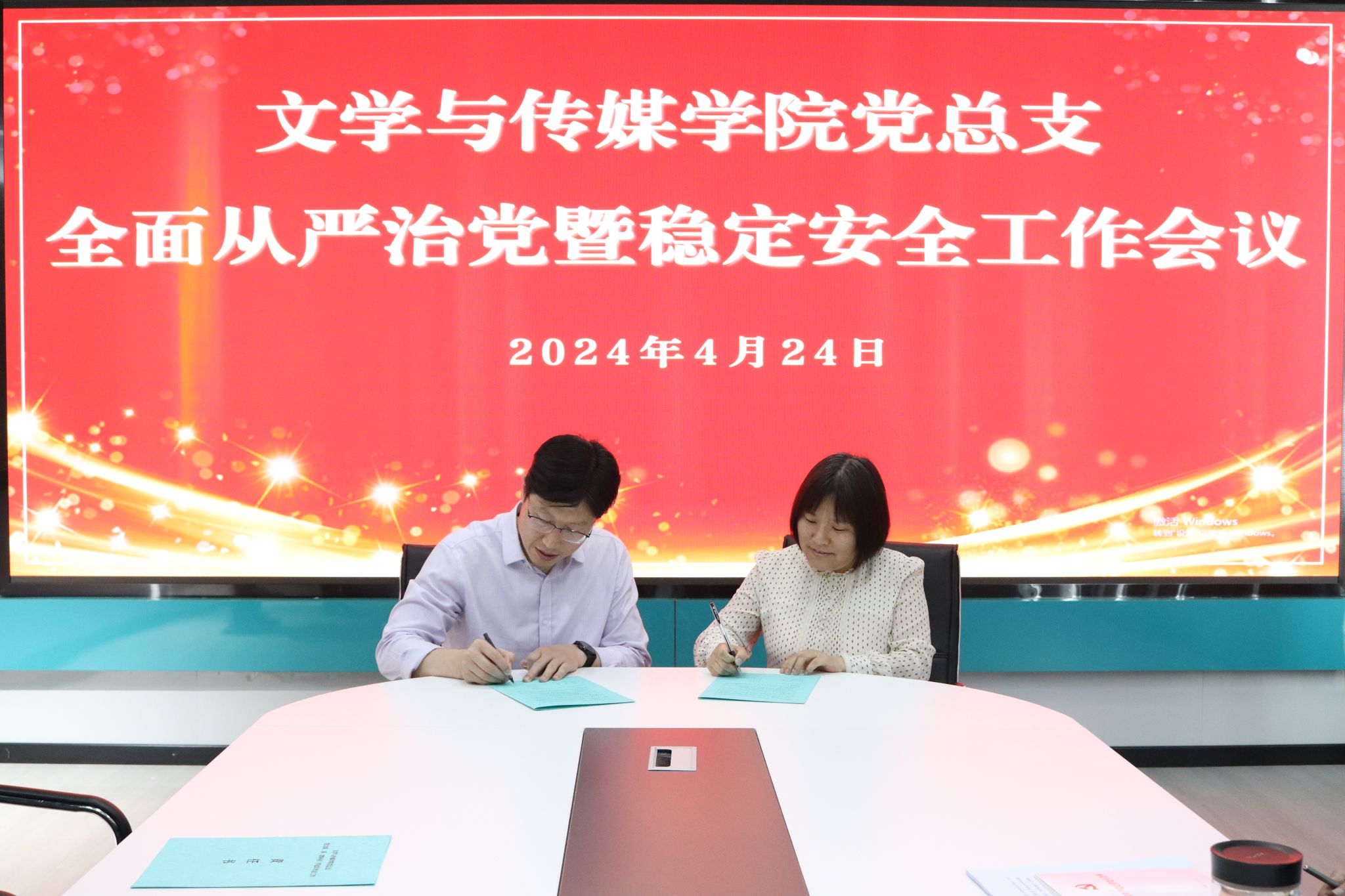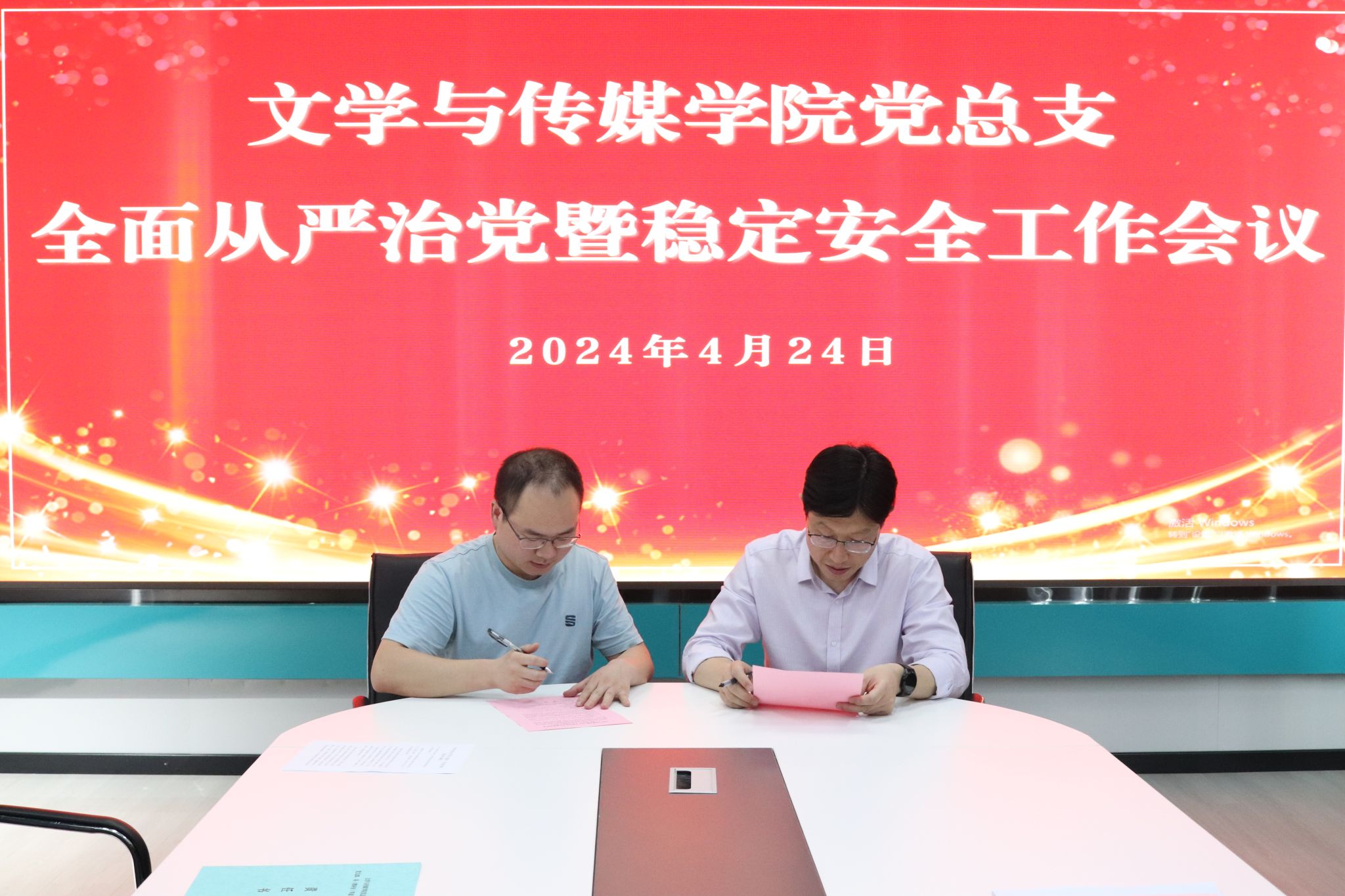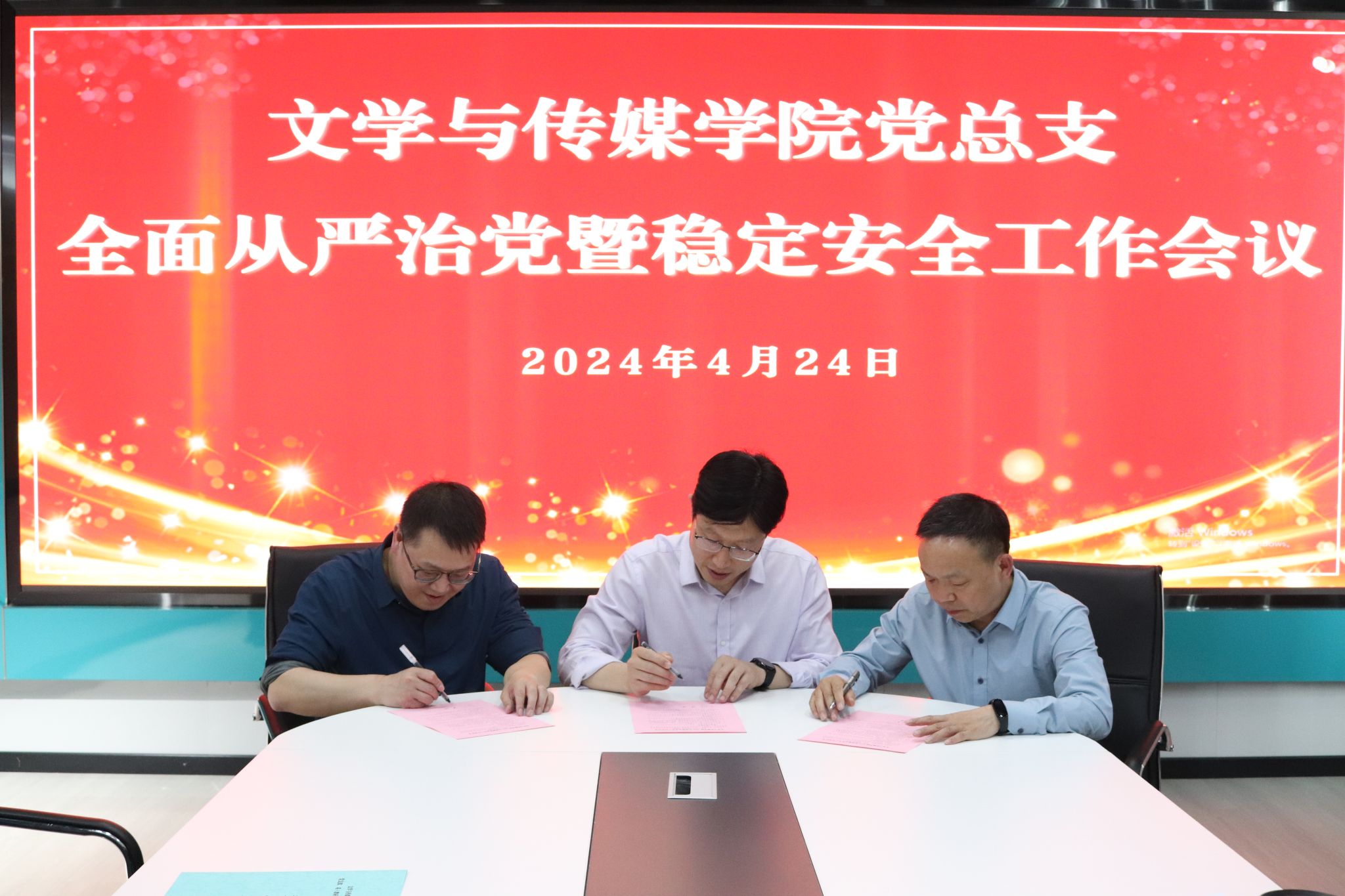 导航痕迹 首页 > 党建群团 > 正文 党建双创 党风廉政专栏 教工之家 团总支 员工分会 公司党总支召开全面从严治党暨稳定安全工作会议 来源:太阳集团tcy8722 发布日期:2024年04月26日 阅读次数: 4月24日,公司党总支在多功能室召开全面从严治党暨稳定安全工作会议,公司领导班子成员、党支部书记、系主任、两办主任等参加会议,会议由公司党总支书记芦伟主持。 会上,芦伟强调了公司2024年全面从严治党、稳定安全工作会议要求,根据《中共太阳集团tcy8722委员会2024年度落实全面从严治党主体责任任务清单》对太阳集团tcy8722相关工作进行了安排部署。 随后,经理杨运庚、党总支书记芦伟分别与领导班子成员签订了全面从严治党、稳定安全工作责任书;芦伟分别与党支部、教师代表签订了全面从严治党、稳定安全责任书和意识形态工作责任书。 最后,芦伟就太阳集团tcy8722做好全面从严治党和稳定安全工作提出几点要求:一是提高政治站位,充分认识和把握全面从严治党的新形势与新要求;二是深入领会在全党范围内开展党纪学习教育的重要意义,将党纪学习教育与支部主题党日和政治理论学习充分结合起来;三是强化安全责任意识,做好隐患排查和风险防范工作,坚决守牢安全稳定底线。 撰稿/发布/崔瑜 摄影/黄治强 审核/芦伟