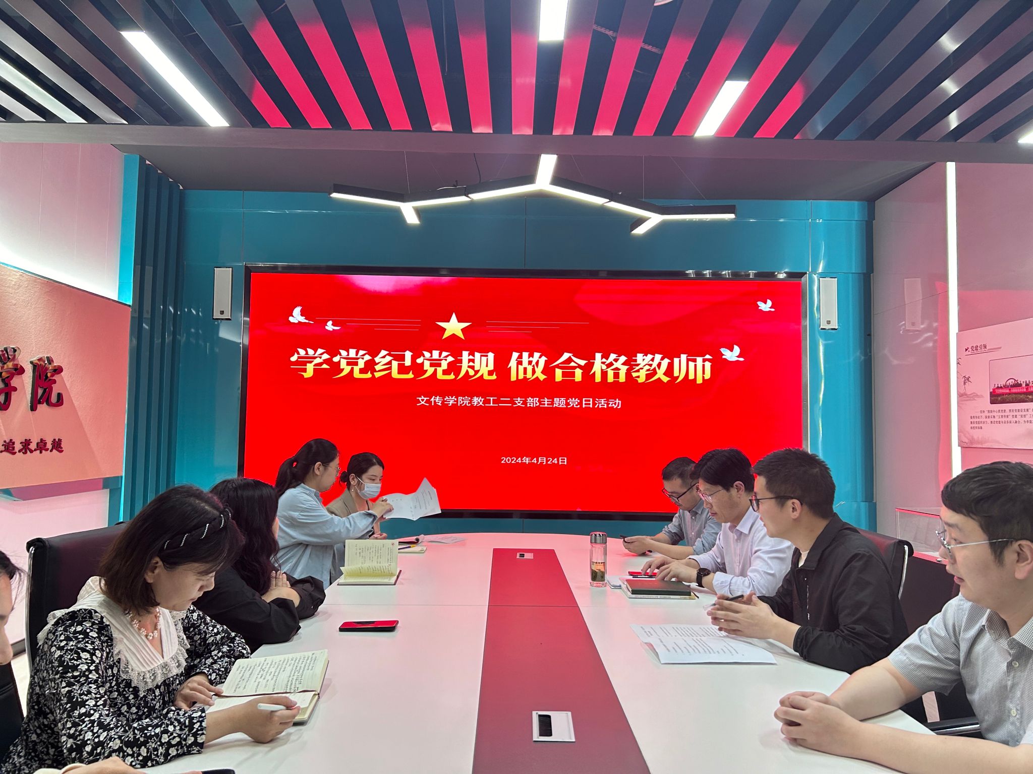 为帮助教师全面了解党纪处分条例,加强党风廉政建设,提高教师队伍的纪律意识和政治素质。2024年4月24日,公司教工第二党支部在数字文传多功能室开展了“学党纪党规 做合格教师”主题党日活动。活动由支部书记张建涛主持。