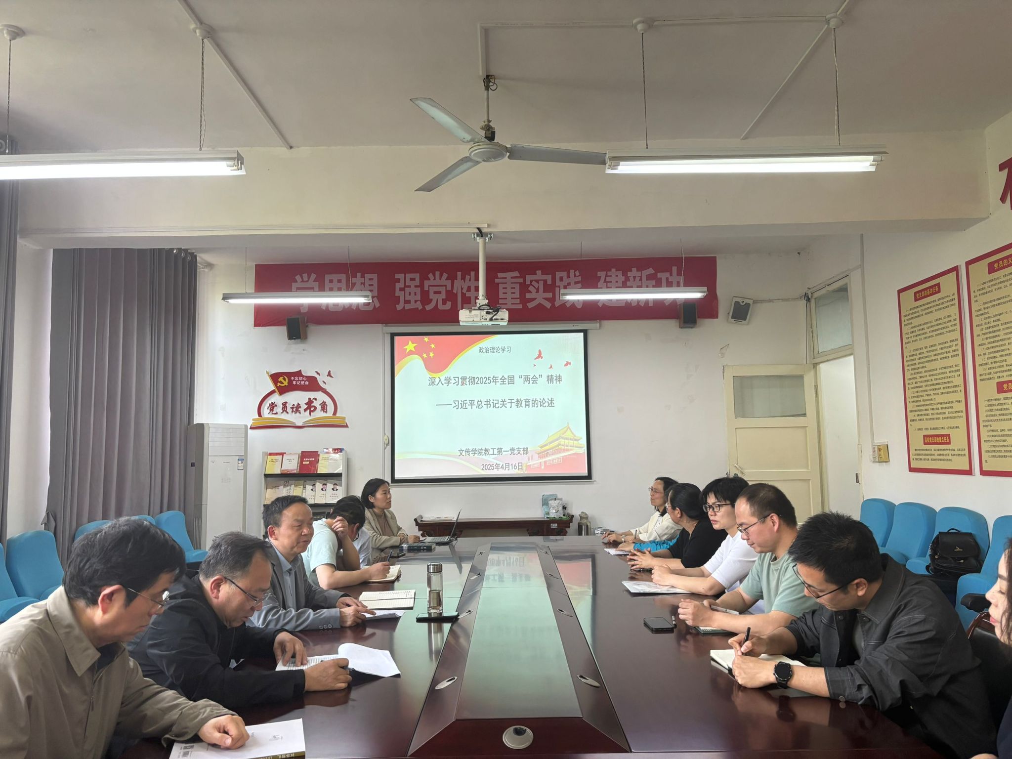 为深入学习贯彻全国“两会”精神,进一步提升党员的政治素养和责任意识,4月16日下午,公司教工第一党支部组织开展了以“深入学习贯彻2025年全国‘两会’精神——习近平总书记关于教育的论述”为主题的党日活动,活动由支部书记韩文霞主持,支部全体党员参加。此次活动采取集中学习、视频观看、交流研讨等多种方式,引导党员深入领会全国“两会”精神,把握国家发展方向,激发党员同志的工作动力和热情,提升党员教师的思想觉悟,强化公司党建工作。