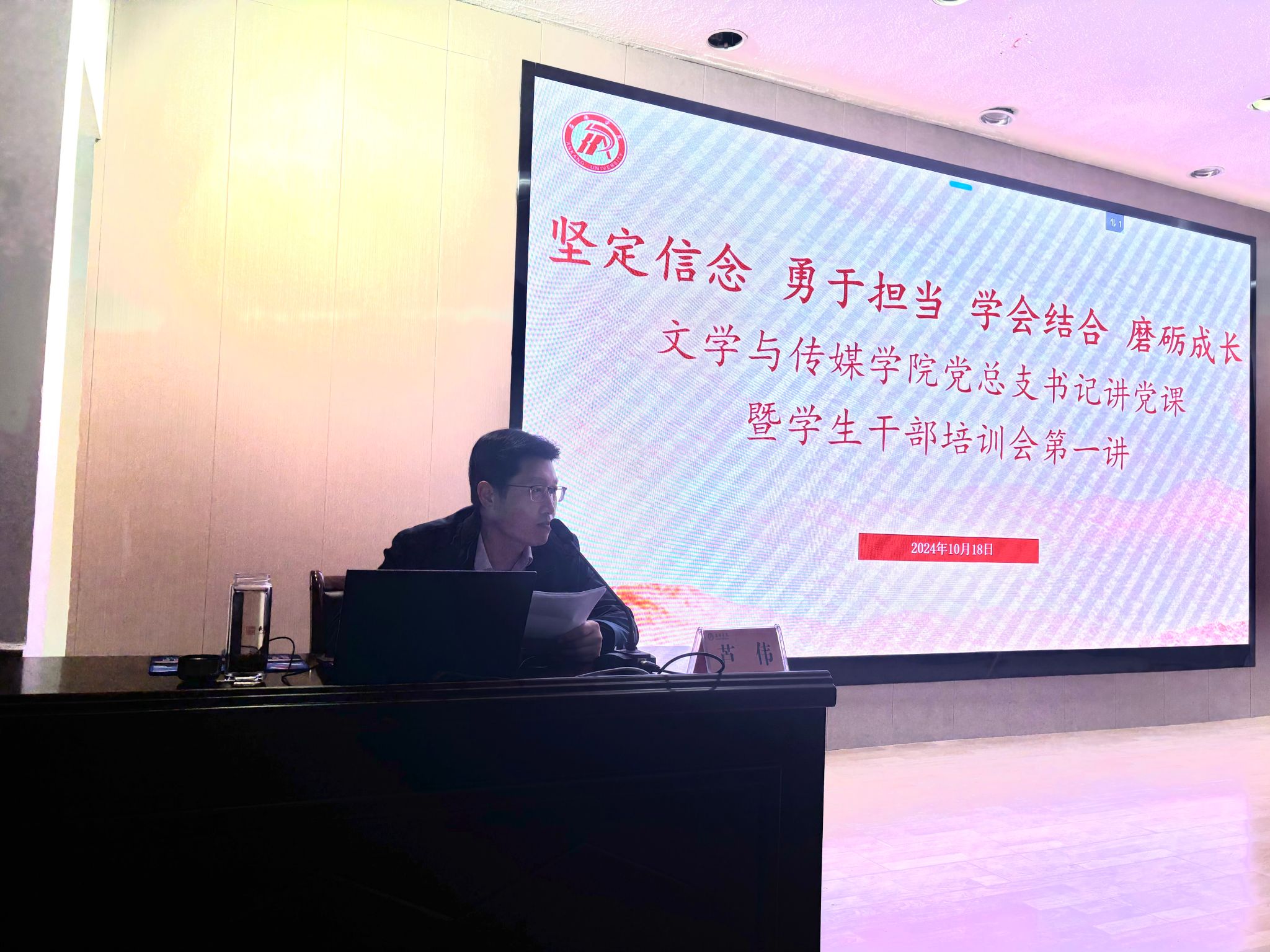 为认真贯彻落实习近平总书记在全国教育大会讲话精神,加强太阳集团tcy8722员工干部队伍建设,10月18日下午,太阳集团tcy8722在一号楼报告厅组织开展党总支书记讲党课暨员工干部培训第一讲,太阳集团tcy8722团总支员工干部、员工会员工干部及各班级班团干部参加培训会,公司党总支书记芦伟担任主讲嘉宾。