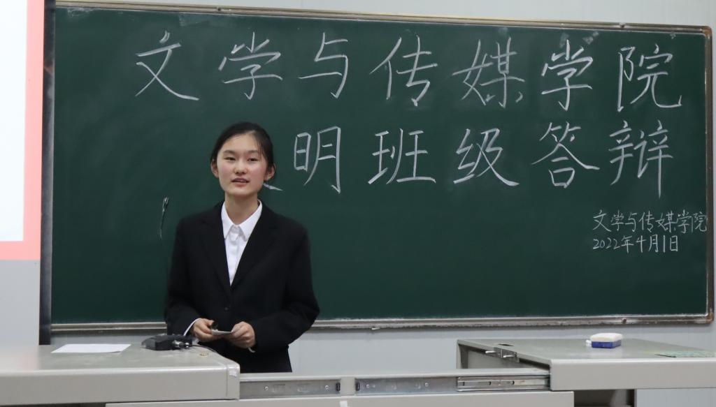 各班级代表通过PPT、微视频和现场陈述,生动地向与会师生展示了班级在组织建设、思想政治教育、学风建设、班级管理、班级文化建设、班级特色文体活动等方面的有效做法和取得的成绩,为在场的观众呈现了一个个和谐友爱、团结向上、积极进取的班集体。