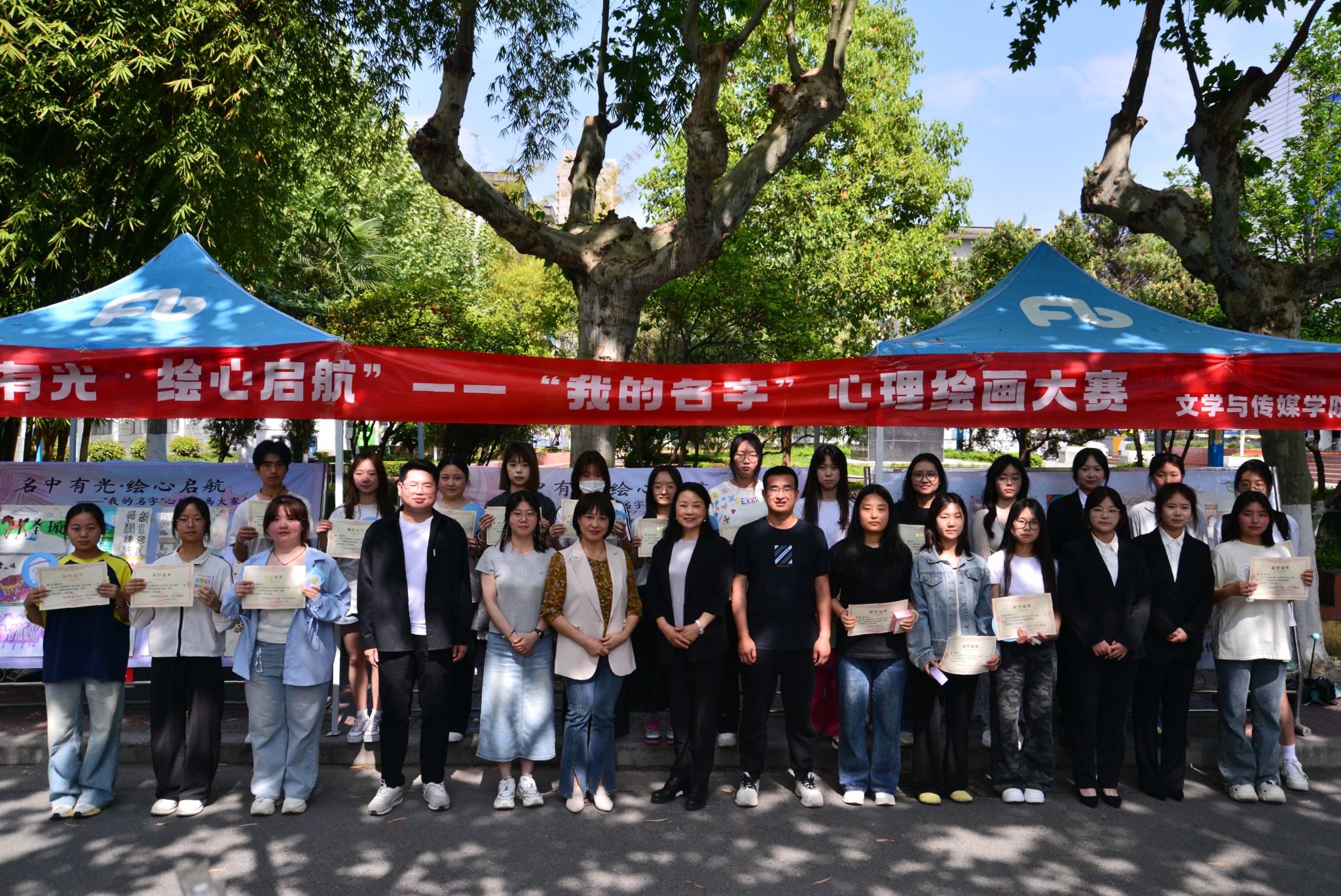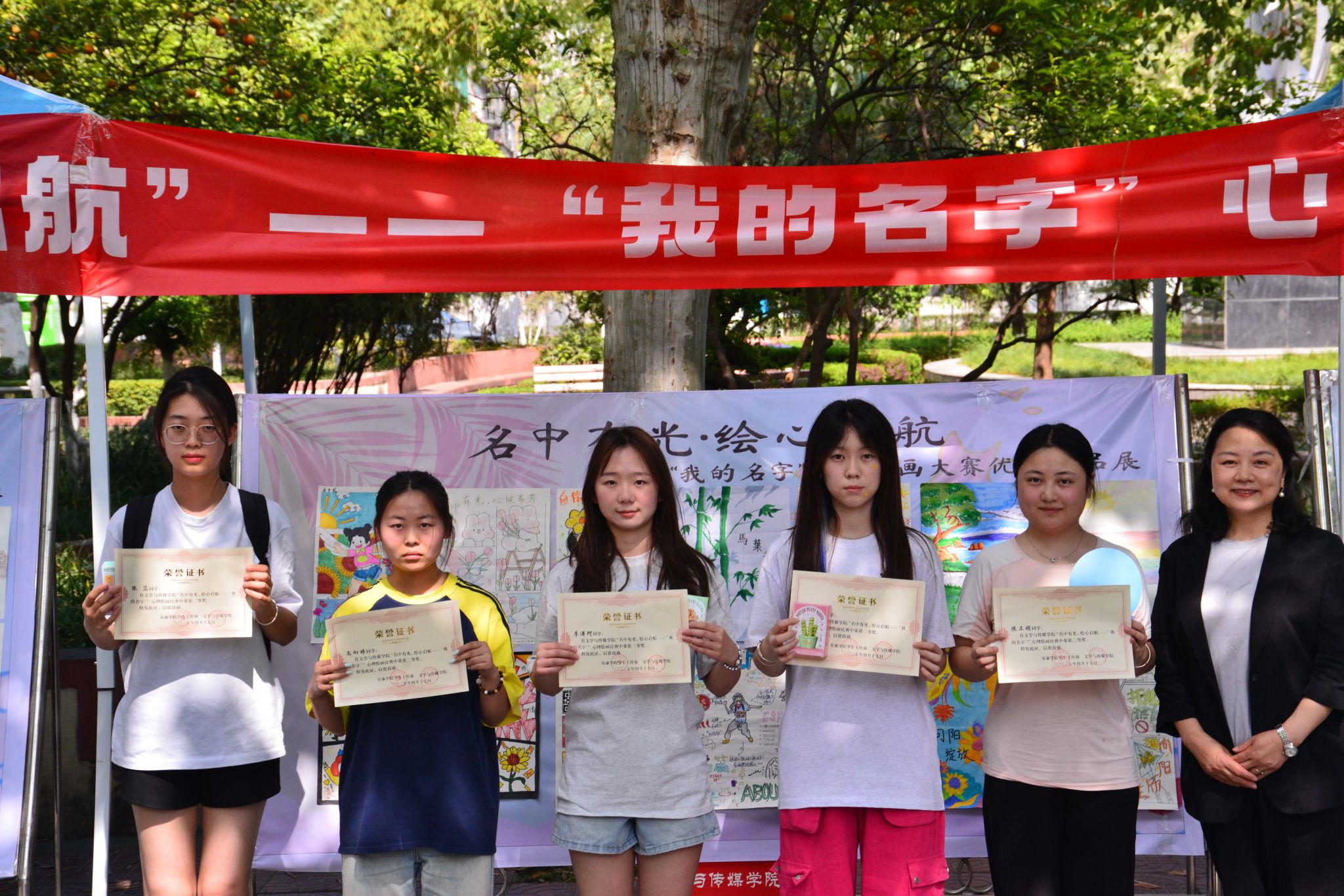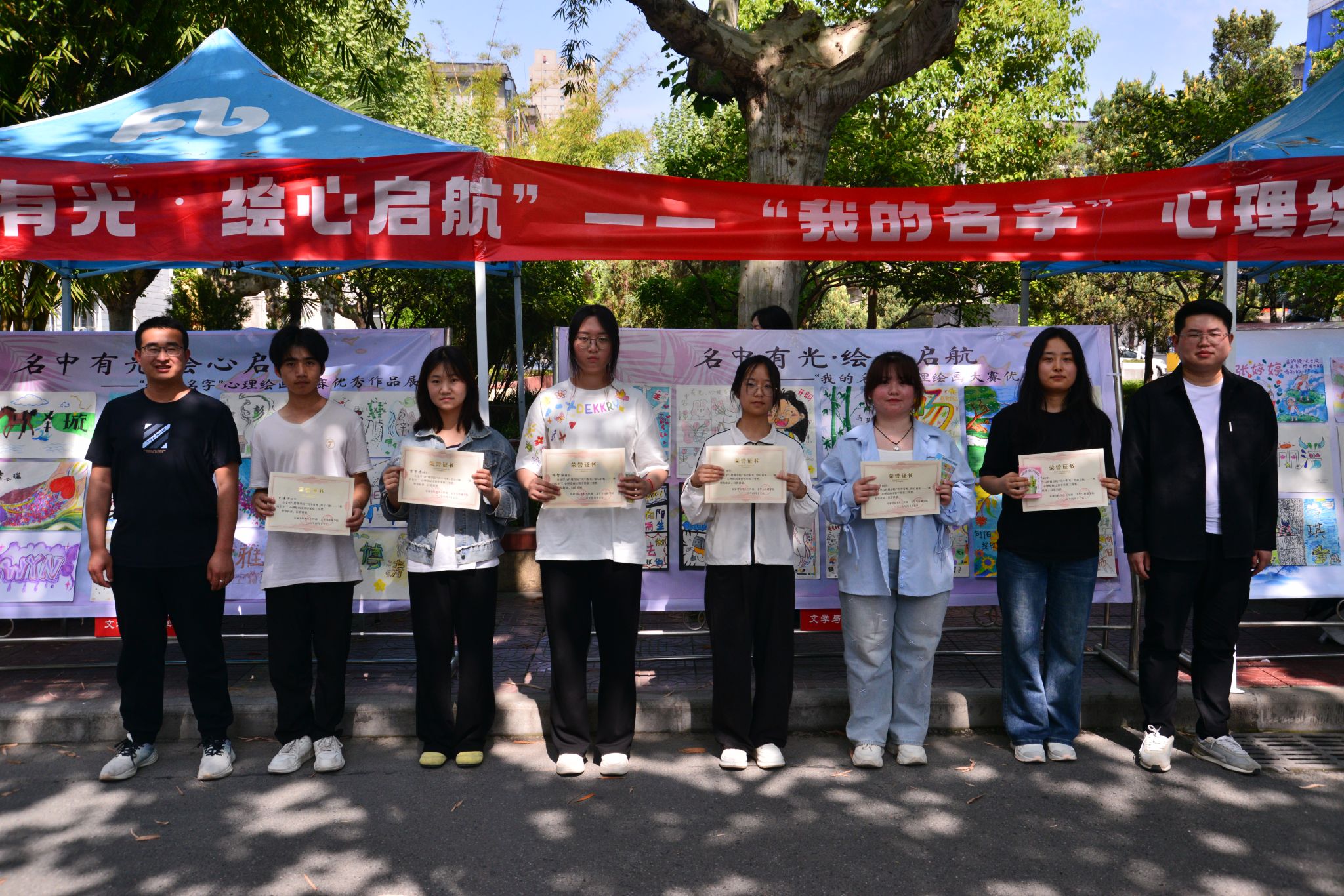 4月18日,颁奖仪式在江南校区林荫道举行。学工部副部长王璐、公司党总支副书记杨海蓉等为获奖者颁发证书及文创纪念品。现场同步举办获奖作品展。