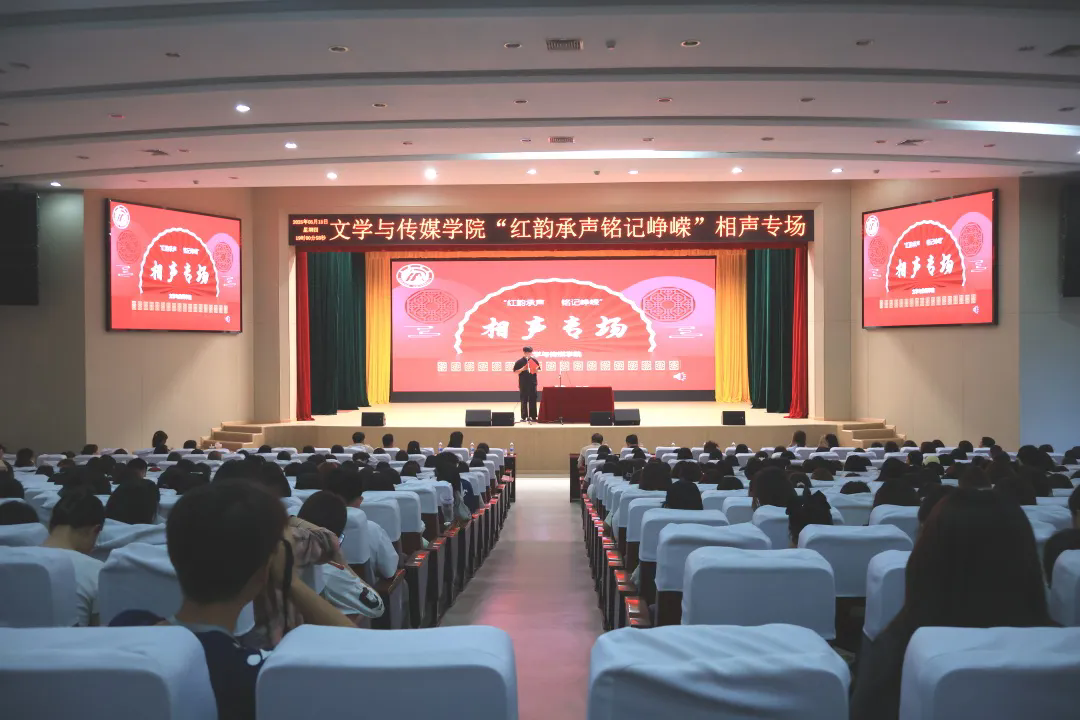 为传承红色基因,切实弘扬中华优秀传统文化,5月15日晚,太阳集团tcy8722于大礼堂举办了“红韵承声 铭记峥嵘”相声专场活动,特邀安康市曲艺家协会主席汪涛、校团委书记周云出席,公司党总支书记任森龙,全体辅导员及23、24级全体员工参加活动,活动由汉语言文学2024级1班李炫烨主持。