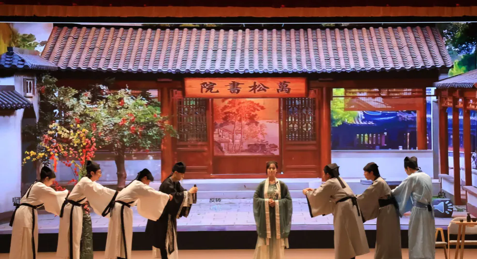 相声专场以田瑞东的快板《看升旗》开场,竹板声清脆,故事生动,勾勒出庄严的升旗场景,现场气氛热烈。胡涵锐与殷晓帆带来的相声《大话鲁迅》用幽默语言解读鲁迅作品,兼顾传统韵味与时代特色,让观众在捧腹大笑中感受到经典文学的独特文化内涵。紧随其后的是康嘉欣、卢政熹、田瑞东、李炫烨等的小品《万松书院》,该作品以“究竟谁是女儿身?”的趣味剧情来展开文化故事,引发现场热烈讨论。相声《口吐莲花》中,杨高兴、姚振锴用巧妙变幻的语言节奏和夸张搞笑的表演动作渲染曲艺氛围,展现出传统相声的精妙绝伦。田瑞东与谢智杰的《打灯谜》则以猜灯谜的形式,实现了益智与娱乐的完美结合,为观众们带来了一场文化盛宴。在互动环节中,演员们齐声合唱《探水清河》,将现场气氛推向高潮。最后,活动在李炫烨的“个人秀”和全体演员们的“猫步”里落下帷幕,流行因素与传统文化的结合不仅拉近了台上台下的距离,也让大家沉浸式感受传统曲艺魅力,引发观众的热烈掌声。