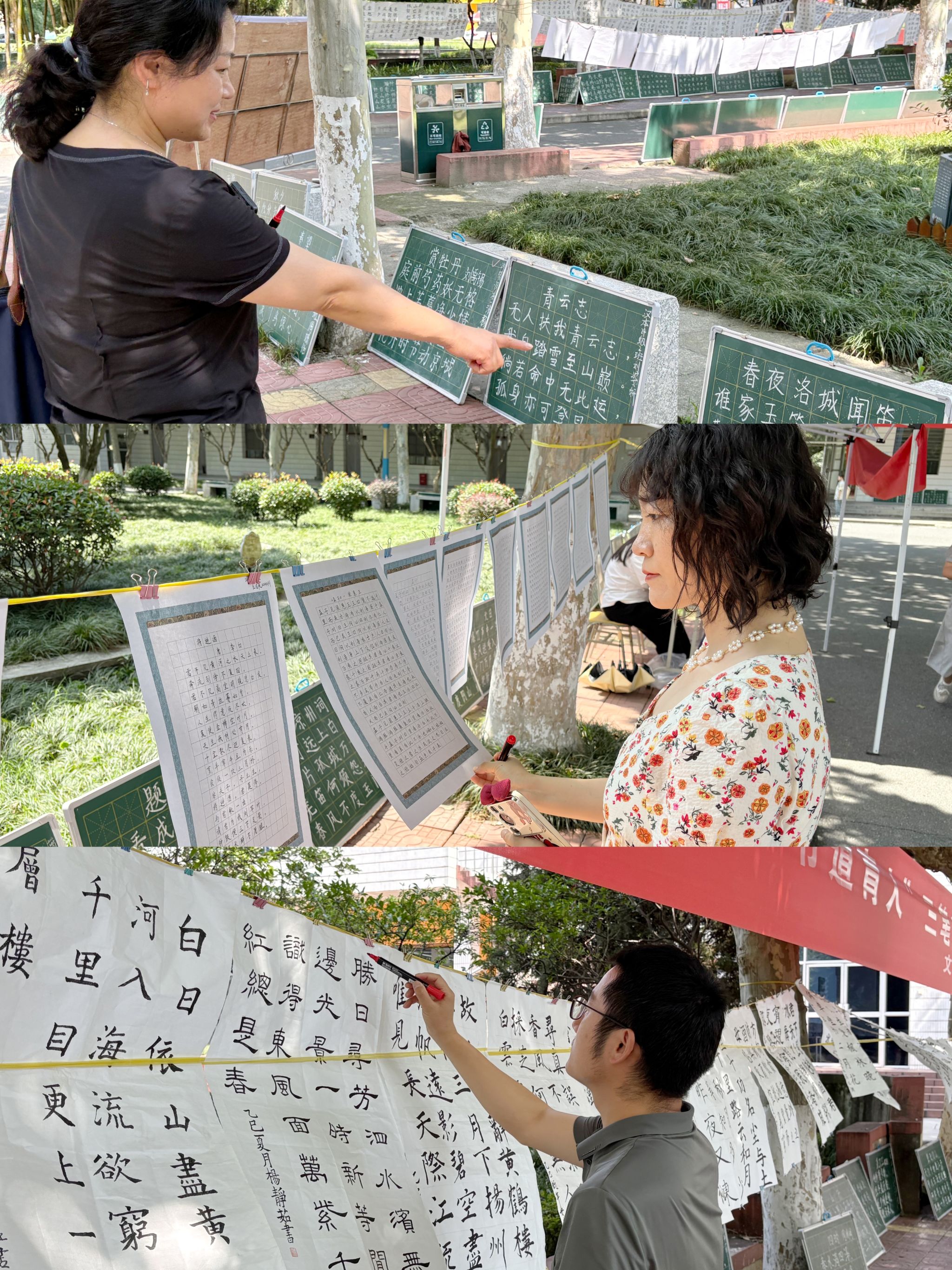 本次活动集中展示了太阳集团tcy87222024级员工在硬笔、毛笔、粉笔三大类书写技能上的训练成果,前期共收到参展作品313幅,经预选后在江南校区2号楼前林荫道两侧现场展示233幅,作品内容涵盖经典诗词、励志名句与传统家训,整体结构工整,布局清晰得当,风格多样,展示了师范生扎实的基本功。