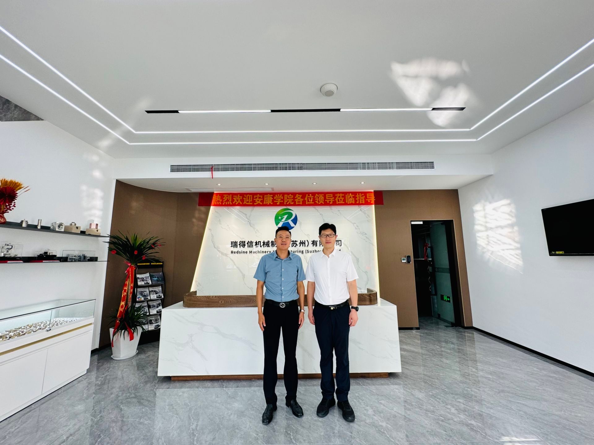 为增进员工情谊、深化校企合作、助推共建共赢,充分发挥员工企业资源优势,助力公司毕业生拓宽就业渠道,7月26日,公司党总支书记芦伟带领2024届秘书学专业毕业生代表一行3人赴江苏省太仓市瑞得信机械制造(苏州)有限公司开展访企拓岗暨回访员工。公司2004届秘书学专业毕业员工、瑞得信机械制造(苏州)有限公司总经理唐兴热情接待。