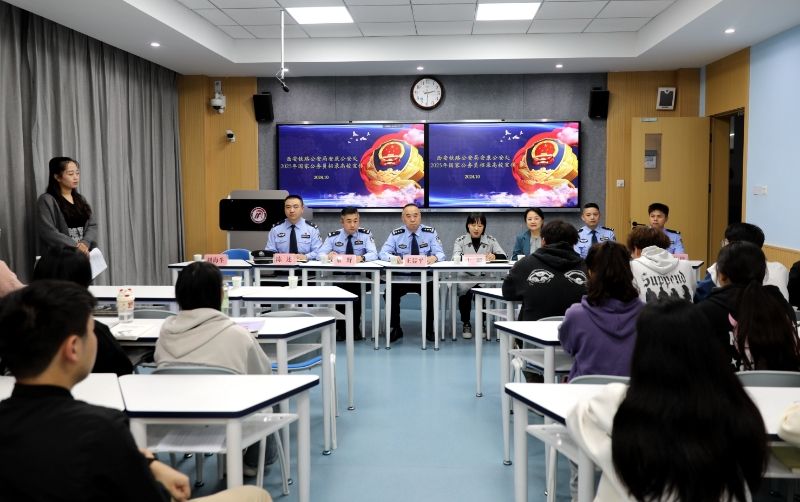 安康铁路公安处工作人员进行多媒体讲解,详细介绍了铁路公安的招录要求、备考方向和职业发展路径。公司毕业生石周和黄伟伟,作为安康铁路公安处民警代表发言,分享了他们在公安岗位上的工作经历和成长感悟,为即将毕业的学弟学妹们树立了榜样。