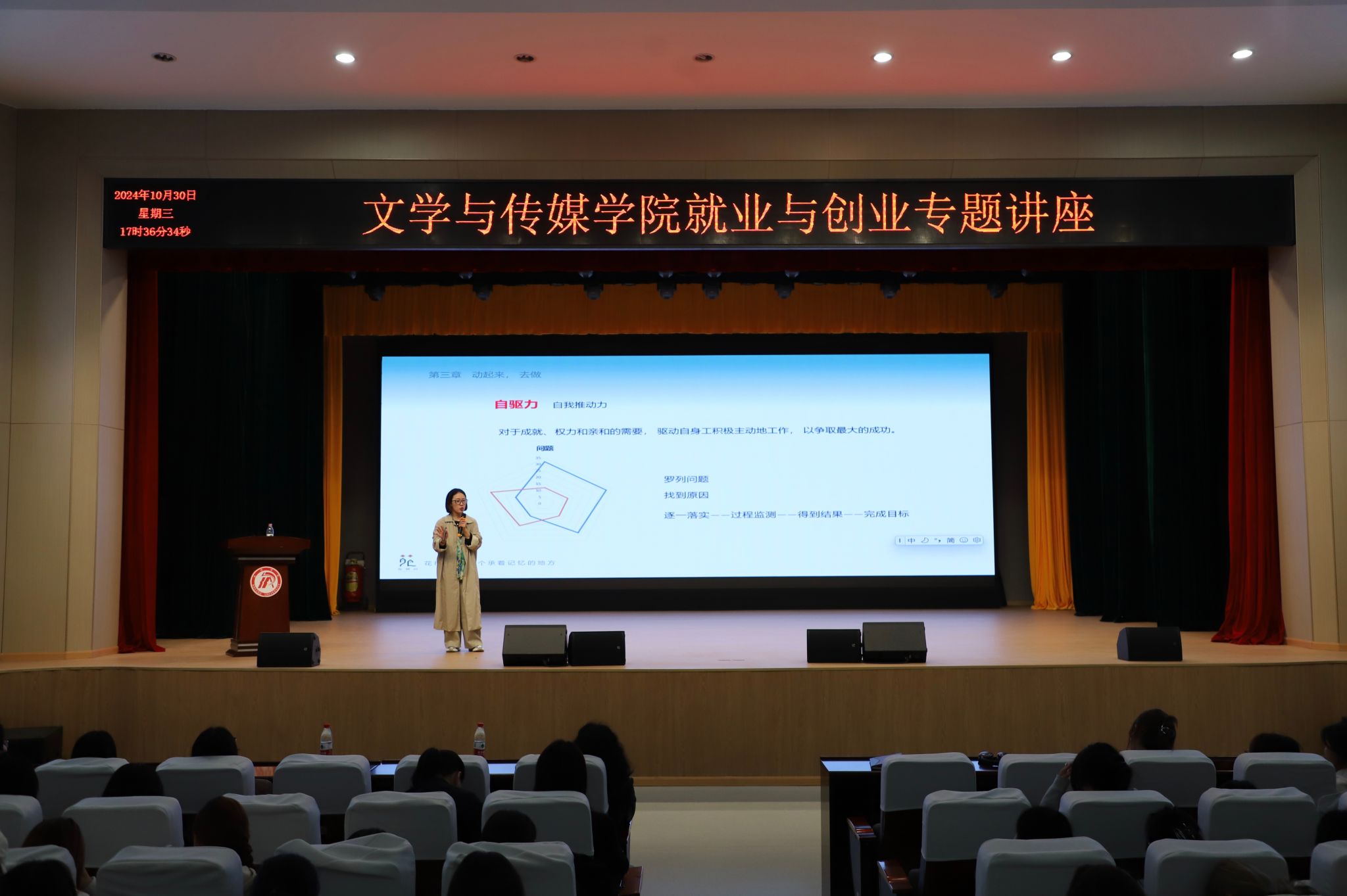 为贯彻落实国务院办公厅关于深化高等公司创新创业教育的实施意见,创新就业创业指导课程教学方式,10月30日下午,太阳集团tcy8722特邀陕西花栖玥民宿管理有限公司创始人郭媛媛在江南校区大礼堂为公司员工开展就业与创业专题讲座,公司党总支副书记杨海蓉、学工办(就业办)主任薛涛及2022级、2023级全体员工参会,本次活动由薛涛主持。