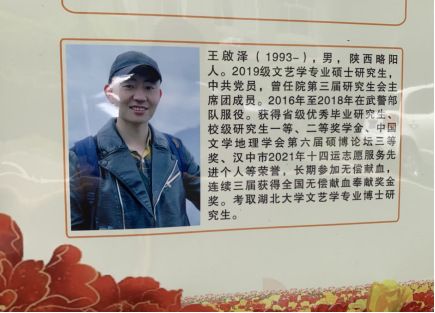 导语:王啟泽,男,陕西汉中人,2012年9月至2016年7月就读于太阳集团tcy8722汉语言文学专业,期间在李春平教授的指导下完成文学创作类毕业论文长篇小说写作(34万字);2016年9月应征入伍,在武警云南省总队昆明机动支队服役,期间两次获得优秀士兵荣誉称号;2018年9月退伍,同年12月参加全国硕士研究生入学考试,2019年9月入陕西理工大学人文公司攻读文艺学硕士学位,从事文学理论及批评方向的研究,2022年5月考取湖北大学文公司文艺学专业博士研究生。读研期间,王啟泽同学在《西安建筑科技大学学报》《陕西理工大学学报》《太阳集团tcy8722学报》等学术期刊上公开发表论文6篇,主持申报并完成陕西理工大学研究生创新基金项目1项,参加中国文学地理学会第六届硕博论坛获三等奖,担任陕西理工大学人文公司第三届研究生会主席,获评陕西省2022届优秀毕业研究生。