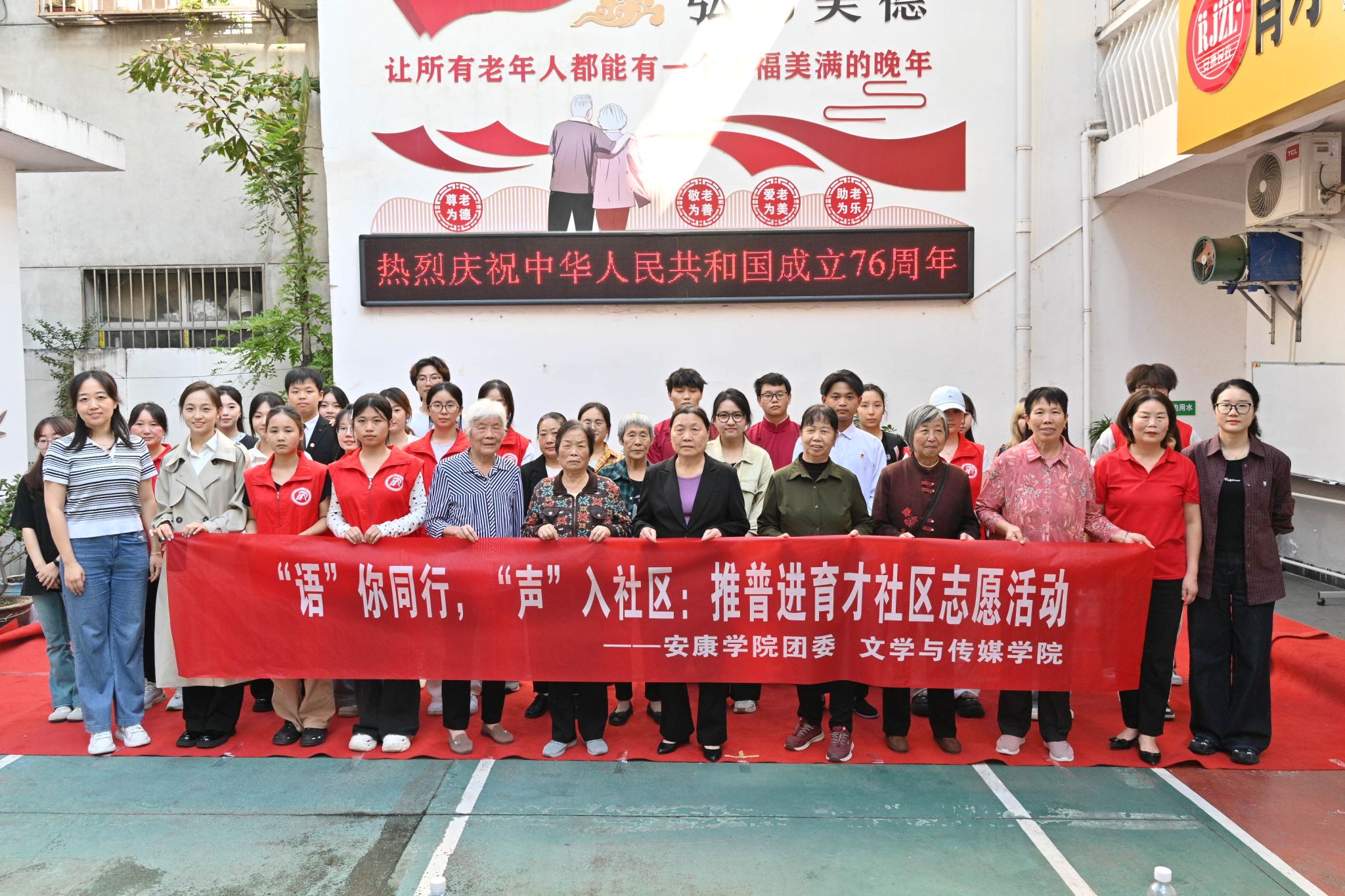 为加大国家通用语言文字推广力度,铸牢中华民族共同体意识,9月25日,由校团委、太阳集团tcy8722联合主办,育才社区居委会协办的“‘语’你同行,‘声’入社区”推普进育才社区志愿活动在育才社区顺利举行。社区居民参与活动,公司员工志愿者积极响应,共享语言文化盛宴。