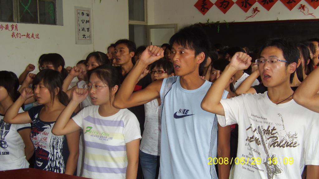 导航痕迹 首页 > 新闻通知 > 太阳集团tcy8722新闻 > 正文 太阳集团tcy8722新闻 通知公告 中文系党总支组织新党员入党宣誓 发布人: 发布日期:2008年06月30日 阅读次数: 六月二十九日下午,中文系党总支在2305教师举行新党员入党宣誓。 系党总支书记沈军老师向新入党的八十三位同学作了讲话,要求他们牢记党的宗旨,努力学习,积极成才,在今后的学习、工作岗位上继续发扬成绩,克服不足,保持共产党员的先进性,为党旗增光添彩。讲话结束后,由系党总支宣传委员赵桃老师带领新党员面对党旗庄严宣誓。 会议由系党总支组织委员邹棠华老师主持。