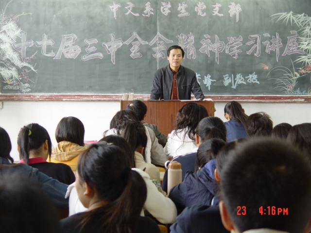 导航痕迹 首页 > 新闻通知 > 太阳集团tcy8722新闻 > 正文 太阳集团tcy8722新闻 通知公告 我系员工党支部举办十七届三中全会讲座 发布人: 发布日期:2008年10月24日 阅读次数: 为了加深员工党员对十七届三中全会内容的了解,我系员工党支部于十月二十三日下午举办专题讲座,请政史系副教授李峰给大家解读《中共中央关于推进农村改革发展若干重大问题的决定》。讲座结束以后,员工党员对中央提出的农村改革发展的基本目标任务和举措进行了认真讨论。