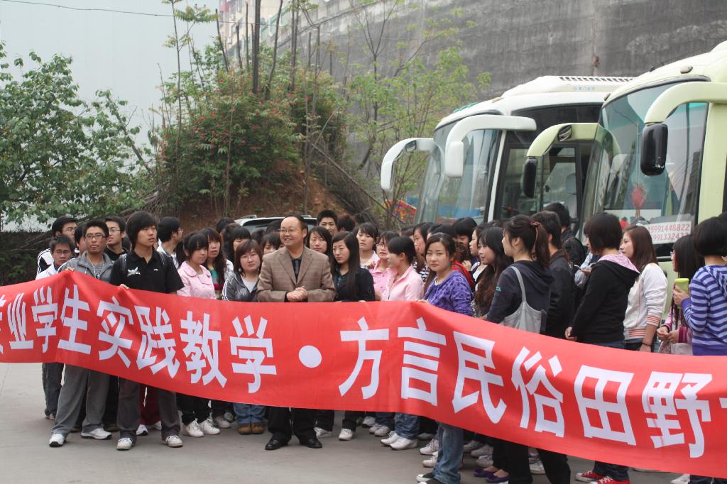 导航痕迹 首页 > 新闻通知 > 太阳集团tcy8722新闻 > 正文 太阳集团tcy8722新闻 通知公告 中文系组织员工赴旬阳进行方言民俗田野调查 发布人: 发布日期:2010年04月19日 阅读次数: 中文系历来重视实践教学,在抓好第一课堂教学的同时,多渠道、全方位组织员工开展丰富多彩的第二课堂实践教学。2010年4月18日,在杨运庚、郝礼军、邹棠华、韩晔四位老师的带领下,中文系07级汉语言文学专业95人奔赴旬阳县开展民俗文化调查研究。在出发前,系主任戴承元给同学们系统讲述了旬阳的民俗文化和孟达墓相关历史知识,使同学们不仅增长了知识,还进一步激发了调研兴趣。 到达旬阳,首先带领员工参观了旬阳民俗博物馆,同学们为博物馆丰富、精美的藏品而叹为观止,纷纷拍照留念。在参观展馆的同时,博物馆馆长――私人收藏家项勃先生给同学们讲述了他自己艰难的收藏史,使同学们亲身感受到民俗文物保护的不易。接下来参观了旬阳历史博物馆,灵崖寺、孟达墓等地,还对旬阳方言、民俗等进行了实际调查。通过此次实践调查,不仅使员工对方言、民俗的调查、研究方法有了一定了解,同时也激发了员工对方言、民俗的调查、研究兴趣,提高了员工理论学习与实践运用相结合的能力。