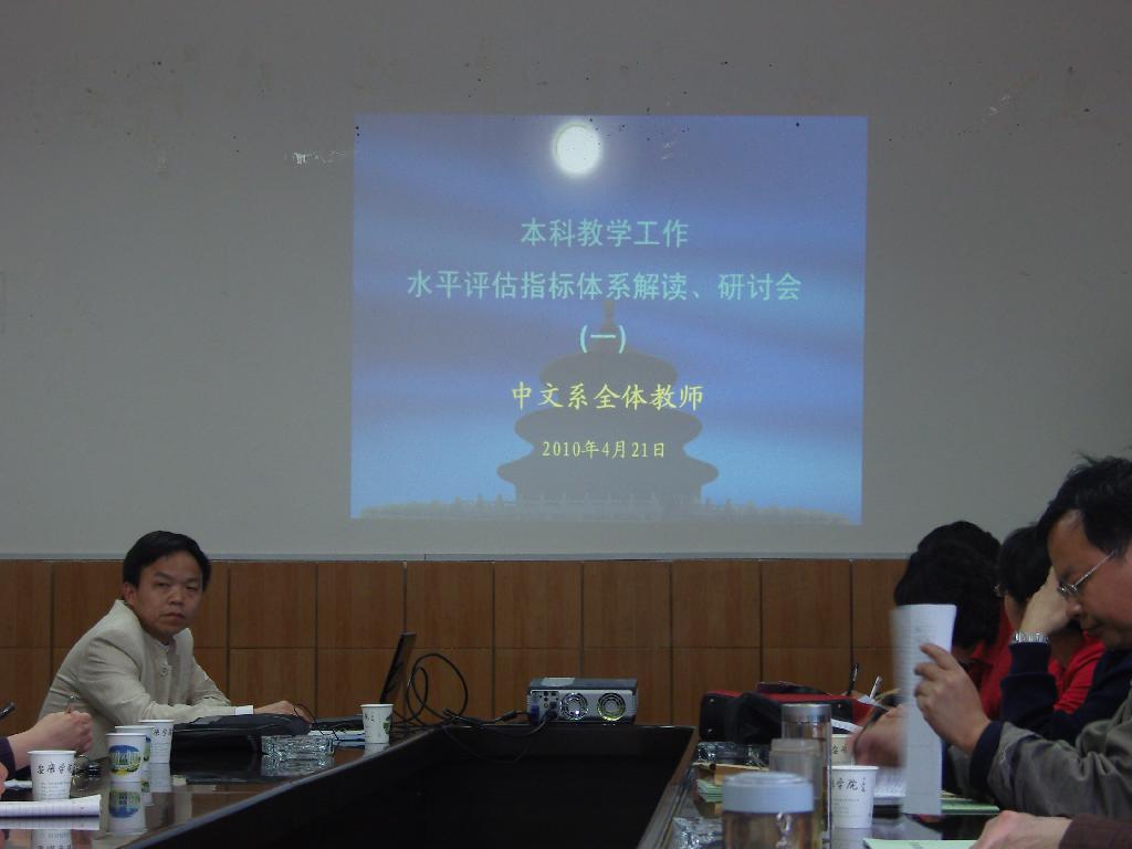 导航痕迹 首页 > 新闻通知 > 太阳集团tcy8722新闻 > 正文 太阳集团tcy8722新闻 通知公告 中文系组织全系教师解读本科教学工作水平评估指标体系 发布人: 发布日期:2010年04月22日 阅读次数: 为了使全系教师更好地了解本科教学水平评估指标体系的内涵,重视本科教学评估工作,营造本科教学评估工作氛围,中文系组织全系教师于2010年4月21日下午在公司大会议室对本科教学工作水平评估指标体系进行了解读、研讨。通过本次解读、研讨会,中文系教师对本科教学水平评估的宗旨、依据、原则、目的等有了进一步的了解,明白了教育部高等公司本科教学水平评估工作的阶段性工作内容和公司评建工作的流程,理解了部分本科教学工作水平评估指标体系的内涵。 本次学习活动是中文系学习本科教学工作水平评估指标体系及其相关文件的系列活动之一,以后还将继续组织全系教师对本科教学工作水平评估指标体系及其相关文件进行深入学习。本次学习活动由中文系主任戴承元主持进行。