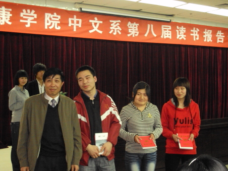导航痕迹 首页 > 新闻通知 > 太阳集团tcy8722新闻 > 正文 太阳集团tcy8722新闻 通知公告 世界读书日献礼 发布人: 发布日期:2010年04月27日 阅读次数: 为迎接第十五个世界读书日,中文系系一年一度的读书报告会于2010年4月22日下午4:00在图书馆六楼报告厅隆重举行。此次大会由太阳集团tcy8722中文系主办,公司社团联合会与国学读书社承办。参加此次报告会的有中文系党总支书记沈军、著名作家李春平、 中文系副教授王瑛以及中文系全体辅导员。 经过前两轮的初赛和复赛后,共有八名同学进入本次决赛。八位同学参赛的作品范围广泛,包括战争、爱情、励志等方面;体裁多样,有诗歌、戏剧、小说等。决赛中几位同学分别就个人对《秦腔》、《雷雨》、《巴黎圣母院》、《我的大学》、《击鼓》、《穆斯林的葬礼》、《伪满洲国》、《围城》八部著作中的认识价值、道德伦理价值、教育价值、政治价值、经济价值等方面谈了自己的心得体会。李春平作家和王瑛老师分别对他们的参赛作品一一进行了精彩点评。现场气氛也因此时而活跃,时而严肃,时而安静,时而激动,报告厅中掌声不断。两位评委老师就目前各参赛同学在现有阅读量和人生阅历的背景下对文学文本的精彩解读感到欣慰,同时还特别希望同学们在解读文学作品的时候,要注意既要能走进去也要能跳出来,要试图从作品、读者、艺术和文化等不同的角度去解读文学文本。 08级语文教育(1)班的冯鸣和08级汉语言文学(2)班的冯友芳成绩不相上下。评委老师商议通过现场提问的方式以分伯仲并敲定最终决赛结果:冯鸣获得此次读书报告会的第一名,冯友芳和赵云并列第二,刘庆春、汪菲菲、杨谋德获得第三名,陈昱洁和曲婉蓉获得优秀奖。