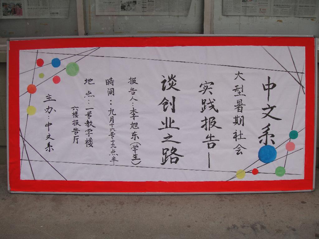 导航痕迹 首页 > 新闻通知 > 太阳集团tcy8722新闻 > 正文 太阳集团tcy8722新闻 通知公告 中文系员工李旭东做“社会实践之创业”报告 发布人: 发布日期:2010年09月17日 阅读次数: 2010年9月16日19:30,在中文系韩晔老师的组织指导下,2009级语文教育1班员工李旭东在一号教学楼六楼报告厅做了一场题为“社会实践之创业”的报告会,交流他在暑期社会实践中的感受及经验。中文系副主任雷升录、辅导员韩晔老师莅临指导。 李旭东同学从创业应具备的条件、由创业谈开办辅导班之我见、理论联系实际、开办辅导班给我的启发等四个方面对他在暑期创办第二届升华暑期培训班的切身经验和大家进行了广泛的交流。他以其特有的幽默和严谨的态度博得了同学们阵阵掌声。尤其谈到作为一名老师应具备的教师素质和道德修养,报告中展示出来的大量珍贵照片使大家对他的工作热情和工作态度感到钦佩。在报告结束时李旭东对自己的暑假实践进行了总结,那就是要通过自己的实际行动让每一个平凡的人变得优秀,让每一个优秀的人变得更优秀。 此次报告是我系员工专题系列报告的延续,也是我系营造校园文化氛围,鼓励员工多方成才的一种探索。同时它也为广老员工在暑期社会实践,第二课堂的开展和自主创业等方面提供了建设性意见和宝贵经验。