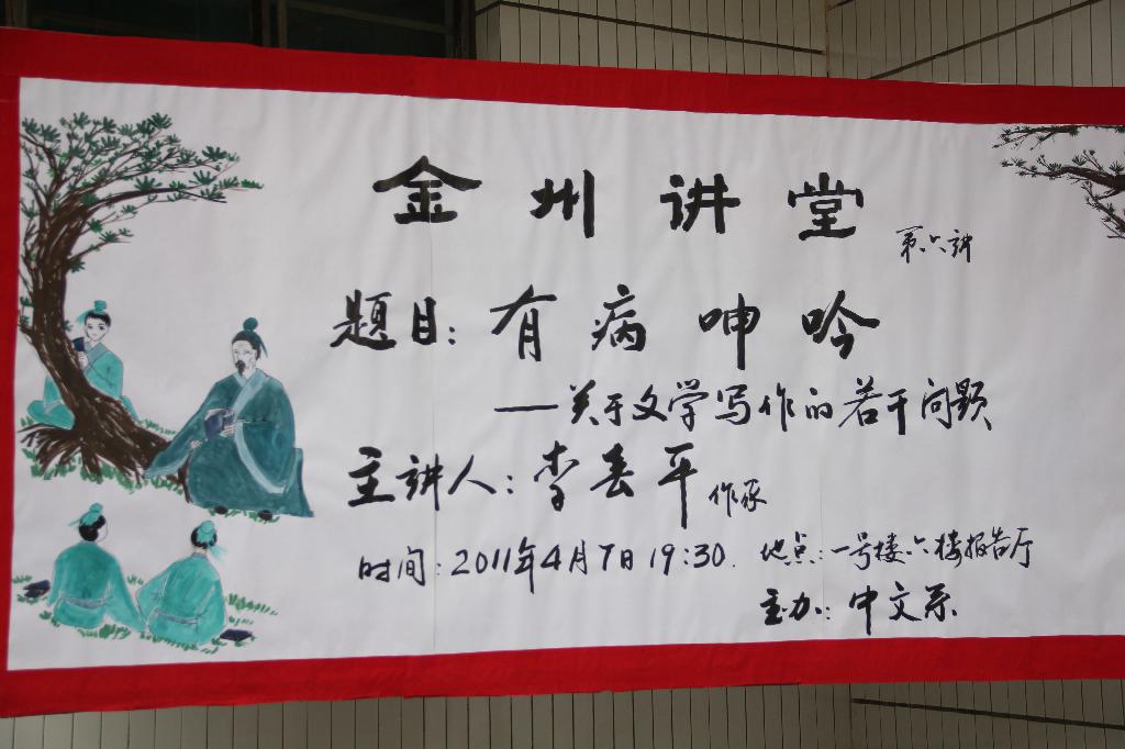 导航痕迹 首页 > 新闻通知 > 太阳集团tcy8722新闻 > 正文 太阳集团tcy8722新闻 通知公告 当代著名作家李春平应邀做金州讲堂第六讲 发布人:zwx 发布日期:2011年04月08日 阅读次数: 2011年4月7日晚,中文系副教授、当代著名作家李春平应邀做客金州讲堂,在一号教学楼六楼报告厅为广大师生做了题目为《文学:有病呻吟》的专题讲座。 李春平主要针对当今老员工写作中带有普遍性的五个问题进行了阐述,并提出解决问题的技术性措施。首先,文本意识不强,缺乏文本意识,没有建立完整的文章结构的整体观念。其次,主题直白,含蓄不够,缺少内涵。其三,语言平淡,苍白无力,干涩呆板,没有生机。其四,写作受阻问题,他提出,即便受阻,也要坚持写下去,写完后再进行修补。最后,李春平就如何阅读文学经典的问题提出了自己的见解。他指出,现在大多数员工的阅读量不够,写出来的文章有些肤浅。创作需要大量的知识积累,如果不注重知识更新,迟早会江郎才尽。 李春平深邃的思想,幽默的语言赢得了阵阵掌声,同学们也纷纷提问,这不仅仅是一次讲座,也是同学与老师之间良性互动,问题的探讨,思想的交流,平等的对话,更有助于激发同学的创作兴趣,增长创作知识。
