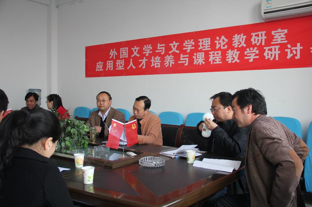 为了进一步明确应用型人才培养目标的具体内涵,并切实将应用型人才培养理念贯穿到教师的公司产品各个环节之中,根据中文系主任戴承元教授细化应用型人才培养目标的指导思想,由主管教学工作的梁卫华副主任、主管科研工作的雷升录副主任具体部署,“外国文学与文学理论”教研室经过近一个月的准备,于4月9日在1号教学楼1603会议室召开了“应用型人才培养与课程教学”研讨会。