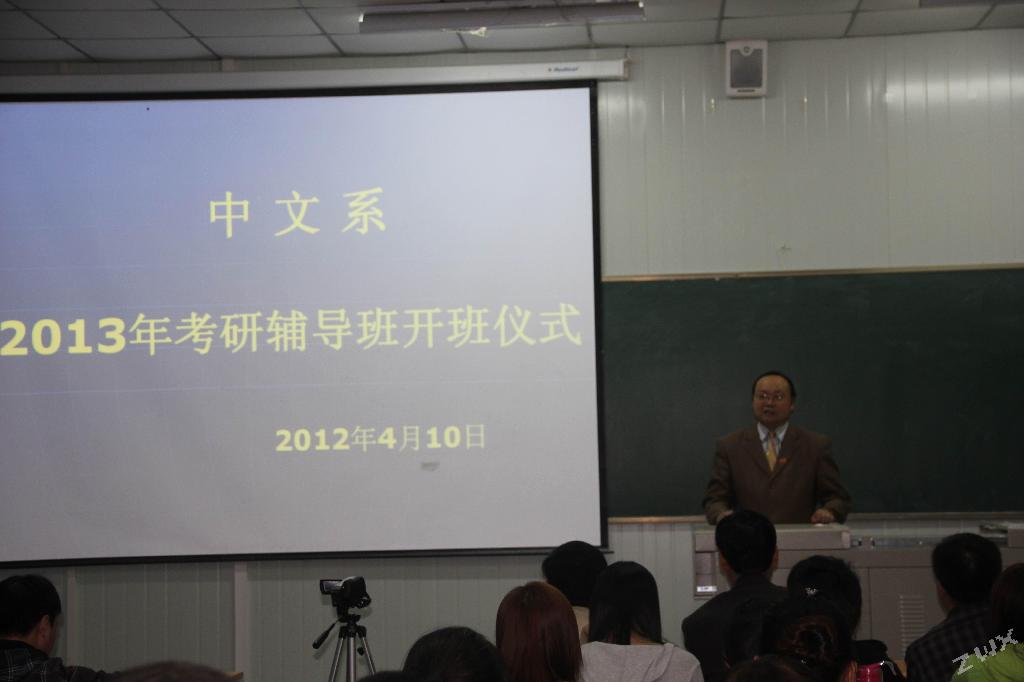 4月10日晚,中文系首届考研辅导班开班仪式暨考研动员大会在1016教室举行。中文系党政领导及辅导班师生出席开班仪式。