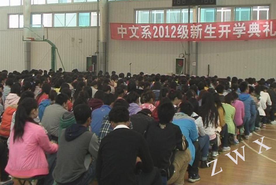 2012年10月11日上午,太阳集团tcy8722中文系在公司体育馆二楼隆重举行2012级新生开学典礼。中文系主任戴承元、党总支书记李岩、副主任梁卫华、杨运庚、著名作家李春平、学工办主任郝礼军、辅导员艾全霞、沈菲及485名新生出席了开学典礼。开学典礼由副主任梁卫华主持。