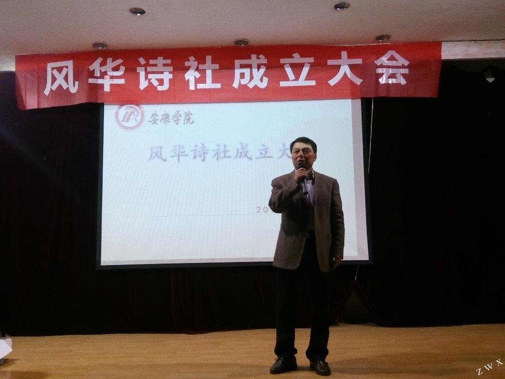 社团成立大会得到了公司、中文系的大力支持,也得到了安康市诗词协会的友情协助。与会的领导有:公司党委副书记胡鸿晓,安康市文艺评论家协会名誉主席田尔斯老师,校团委副书记肖红香,中文系党总支书记李岩,中文系副主任梁卫华等。