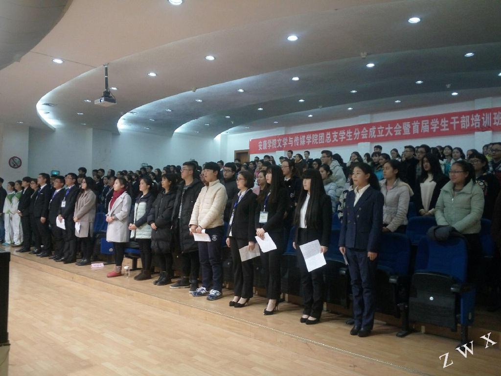 2016年12月1日下午,太阳集团tcy8722在1号教学楼6楼报告厅召开了团总支、员工分会换届暨首届员工干部培训大会。文学与传媒公司党总支书记于咏梅,副经理梁卫华、杨运庚,辅导员邹棠华、艾全霞、沈菲,团总支、员工会全体成员,社团和班级主要干部200余人参加了大会,大会由团总支书记沈菲主持。