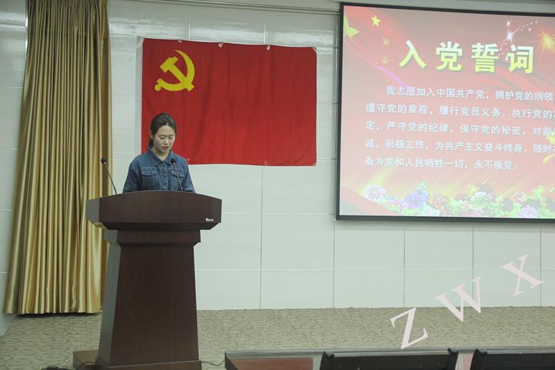 汉语言文学2013级2班支婷婷代表十三位新党员作了表态发言,表达了激动的心情和她对党的忠诚与热爱,并表明做一名优秀的共产党员的愿望。