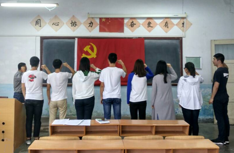 导航痕迹 首页 > 新闻通知 > 太阳集团tcy8722新闻 > 正文 太阳集团tcy8722新闻 通知公告 喜迎十九大 做合格党员——公司党总支举行新党员宣誓仪式 发布人: 发布日期:2017年09月29日 阅读次数: 9月26日,公司党总支在2514教室举行了喜迎十九大 做合格党员——新党员入党宣誓仪式。党总支组织委员、员工第一党支部书记邹棠华同志主持了宣誓仪式,员工第二党支部书记沈菲,支委王薇薇、张建涛,辅导员艾全霞以及两个支部全体员工党员参加了宣誓仪式。 仪式开始,全体肃立,陈柯旭等新发展的8位新党员上台,在邹棠华同志领誓下,面对党旗庄严宣誓。 邹棠华同志对新党员表示了欢迎与祝贺,他强调,在十九大召开前夕举行新党员宣誓仪式让我们增强了党员意识,明确了党员身份,希望我们全体员工党员要紧密团结在以习近平同志为核心的党中央周围,牢固树立“四个意识”,以“四讲四有”合格党员的标准严格要求自己,重视对党章等基本理论知识的学习,坚定理想信念,强化宗旨意识,提升党员素质,发挥先锋模范作用,自觉接受党的监督,做一名合格党员。