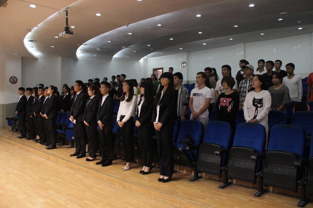 大会伊始,全体起立齐唱团歌,上一届团总支副书记、员工分会主席许昭阳做2016-2017学年度工作报告;随后,邹棠华宣读上一届团总支、员工分会优秀员工干部名单及新一届团总支、员工会成员名单并为上届优秀员工干部颁发荣誉证书。艾全霞宣读了获评校级文明班级、文明宿舍以及院文明班级、文明宿舍名单,随后,于咏梅、邹棠华、艾全霞分别为为校级、院级文明班级、文明宿舍的代表颁发了证书和奖金。