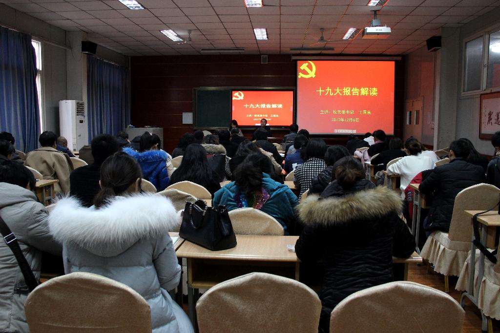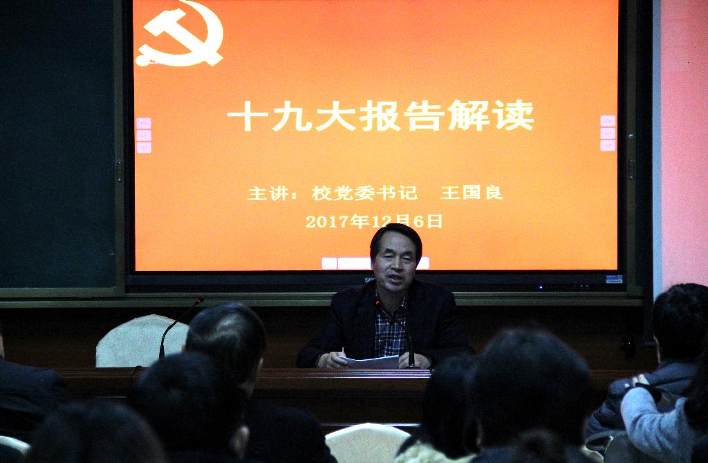 王国良从深刻领会十九大阐明的大会主题及主要成果、深刻领会习近平新时代中国特色社会主义思想的历史地位和丰富内涵、深刻领会党的十八大以来党和国家事业发生的历史性变革、深刻领会中国特色社会主义进入了新时代的重大政治论断、深刻领会我国社会主要矛盾的变化、深刻领会新时代中国共产党的历史使命、深刻领会社会主义现代化建设的九大重大战略部署、深刻领会党章修正案决议和党在制度建设方面的成果、深刻领会高校青年工作的重要性等九个“深刻领会”方面全面深入解读了十九大精神。王国良不时引用十九大报告原文和习近平总书记系列重要讲话内容,帮助师生党员更好理解、学习十九大精神。同时,他结合个人经历、思考和现实案例,结合太阳集团tcy8722的高校使命,深入浅出地为师生讲解报告精髓和要义。