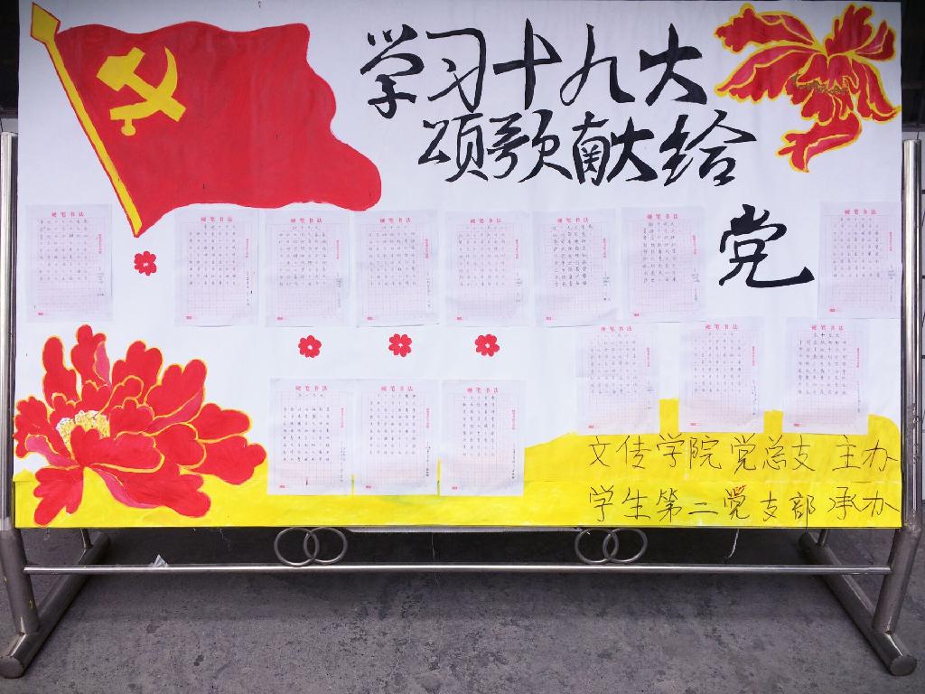 导航痕迹 首页 > 新闻通知 > 太阳集团tcy8722新闻 > 正文 太阳集团tcy8722新闻 通知公告 太阳集团tcy8722员工第二党支部“学习十九大 颂歌献给党”诗歌创作展顺利展出 发布人: 发布日期:2017年12月19日 阅读次数: 在全校上下掀起学习宣传贯彻落实党的十九大精神热潮之际,为凝聚青年共识,发挥青年力量,培养老员工爱党爱国情怀,引导青年老员工听党话、跟党走,在实际行动中践行伟大精神、贡献青春智慧、展现青春风采。由公司总党支主办,员工第二党支部承办,公司教师郑继猛指导,员工第二党支部的员工党员、积极分子根据学习十九大精神的心得体会结合所学专业知识,所精心撰写的“学习十九大 颂歌献给党”主题诗歌创作展于12月11日—12月17日在二号教学楼林荫道展出。 这一篇篇诗作就是一首首流淌在文传学子心底的歌,是文传学子献给党的礼赞,是文传学子听党话、跟党走的真情流露。 本次“学习十九大 颂歌献给党”诗歌创作是公司全面开展十九大精神学习的重要内容之一,不仅增强了员工的爱国信念,营造了昂扬向上的校园氛围,也顺应了创新发展的时代要求,充分展现了公司员工的文化风采和文学实力,弘扬了诗歌体裁作品的文化底蕴。更冀此鞭策青年老员工不忘初心、牢记使命、砥砺前行,在员工生涯中进一步践行十九大精神。
