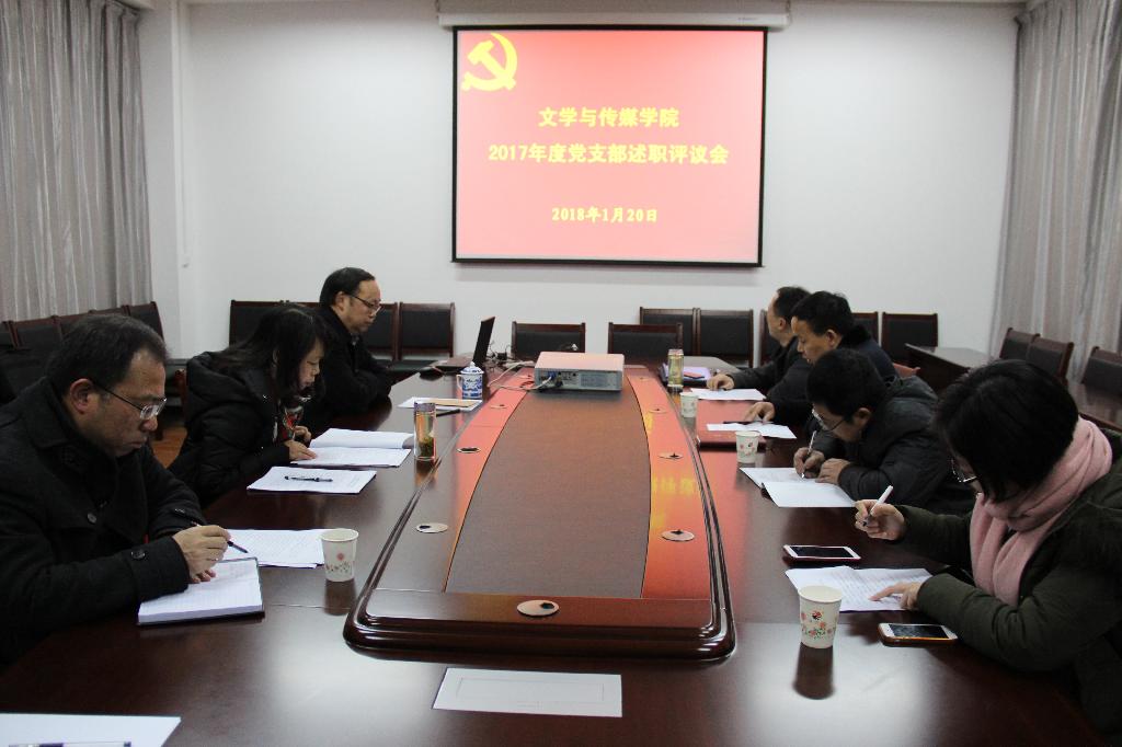 2018年1月20日,文学与传媒公司党总支在陕南民间文化研究中心会议室组织召开了党支部述职评议考核大会。参加本次会议的有公司领导班子成员、党总支委员、各党支部书记、部分党支部委员等。会议由党总支书记于咏梅主持。
