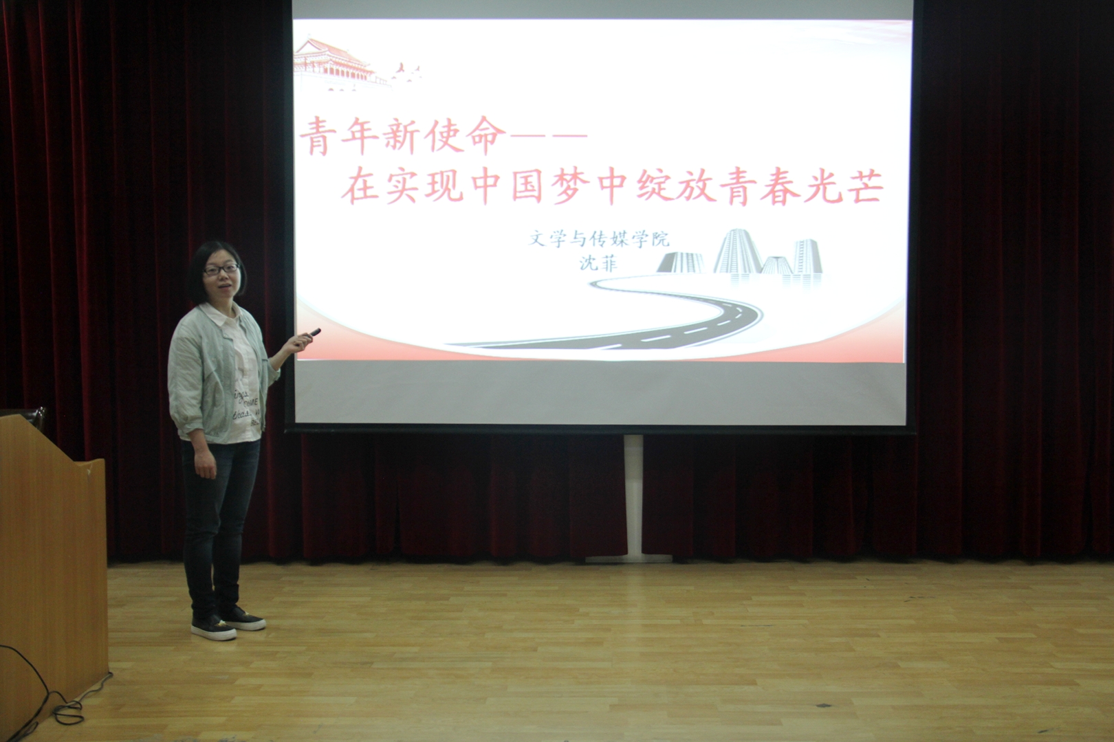 为学习和贯彻全国“两会”和党的十九大精神,围绕学工部《关于在员工中开展学习宣传贯彻党的十九大精神工作方案》要求,按照统一安排,太阳集团tcy8722于2018年4月22日晚19:30,在一号楼六楼报告厅举办题为“青年新使命——在实现中国梦中绽放青春光芒”十九大精神专题解读报告会,由学工办主任、团总支书记沈菲担任主讲。太阳集团tcy8722学工部副部长黄娟、学工部心理健康咨询中心教师柯小敏、江南校区各院系辅导员及2016级全体员工参加了本次报告会。